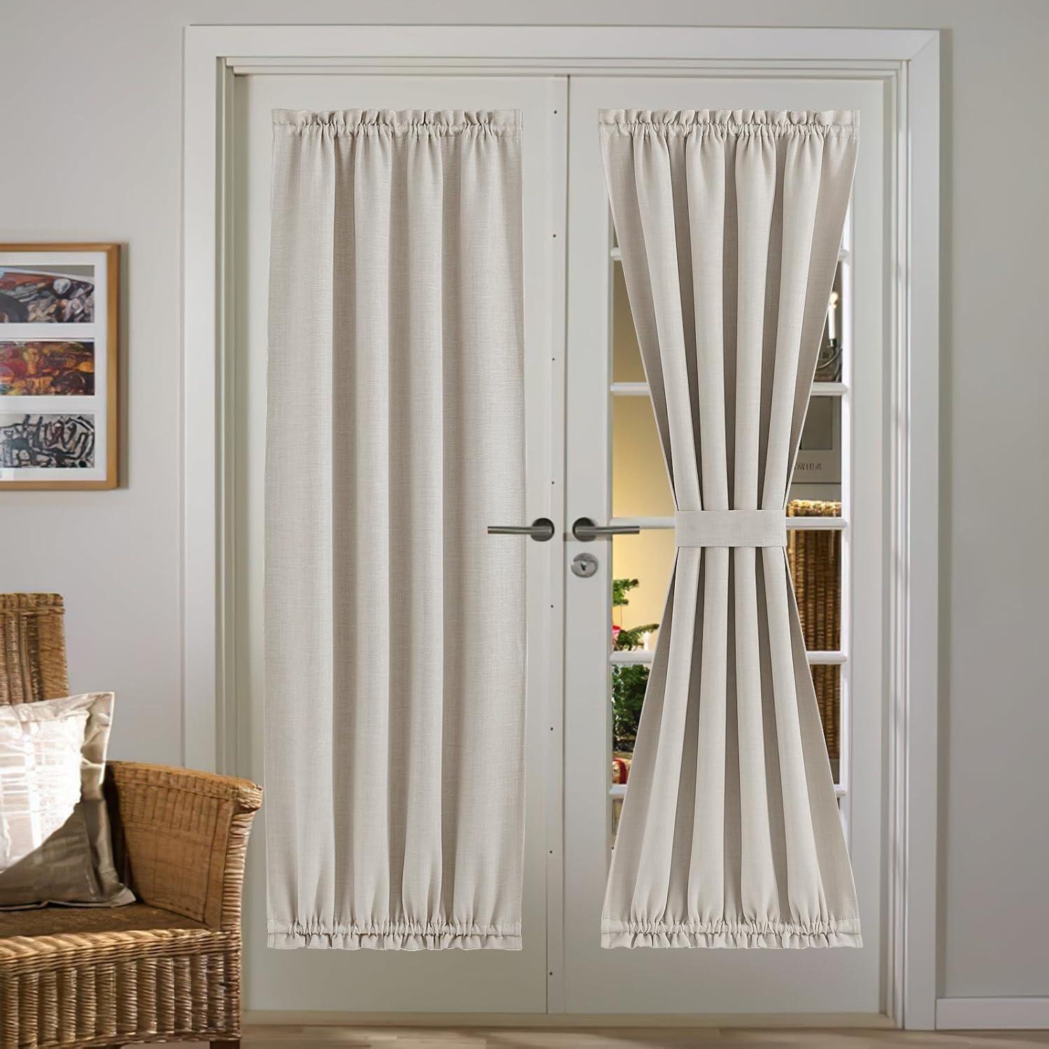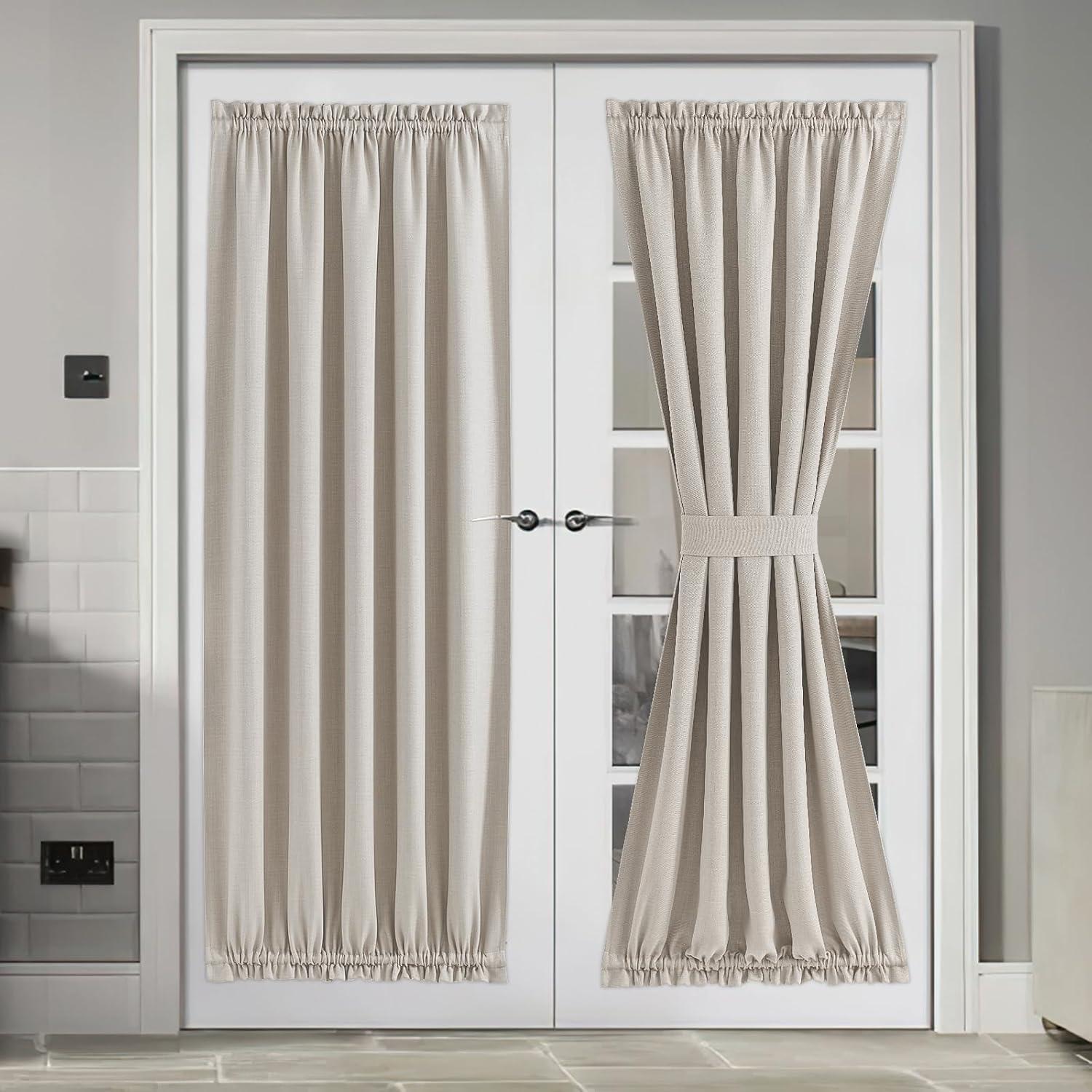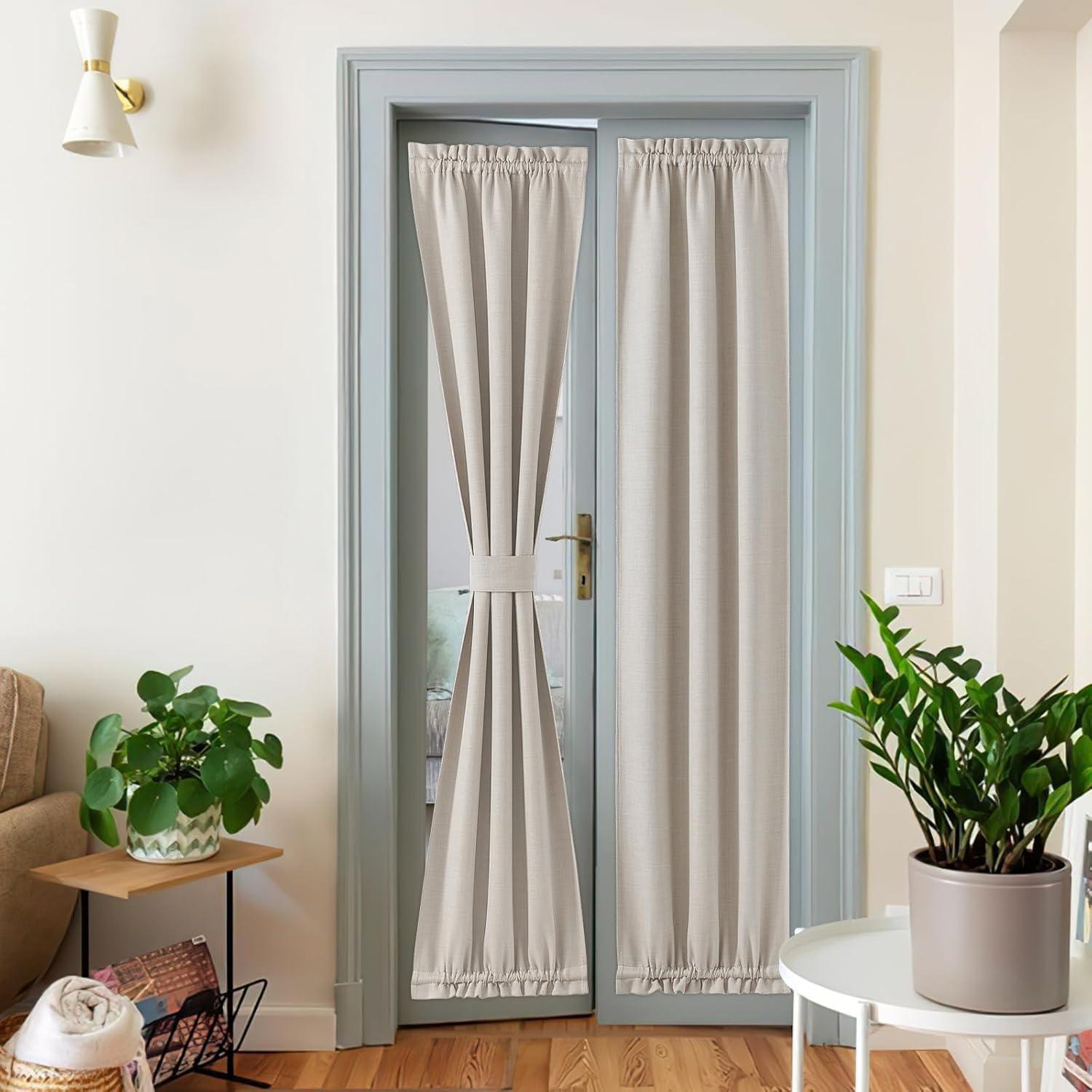 imageNICEETOWN 100 Blackout Door Curtain Light Green Linen Blended Privacy French Short Door Curtain for Patio Sidelight Shade for Glass 25 x 40 inches 1 PanelBeige