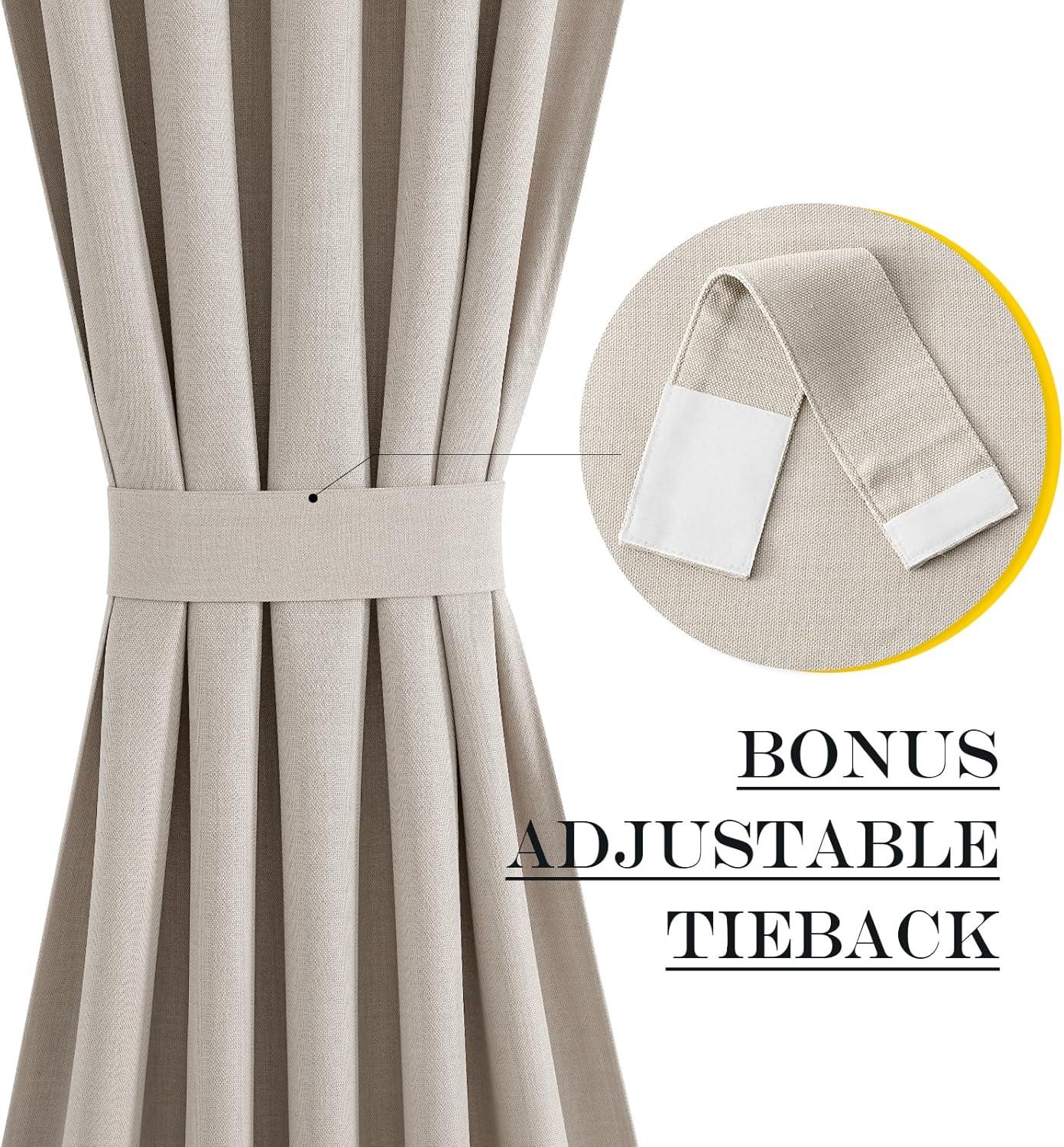 100% Blackout: The real blackout door curtains on the market. Linen blackout curtains crafted with white liner backing make the drapes completely keep out the 100% sunlight and UV ray. Protect your furniture from color fading due to sunlight exposition.