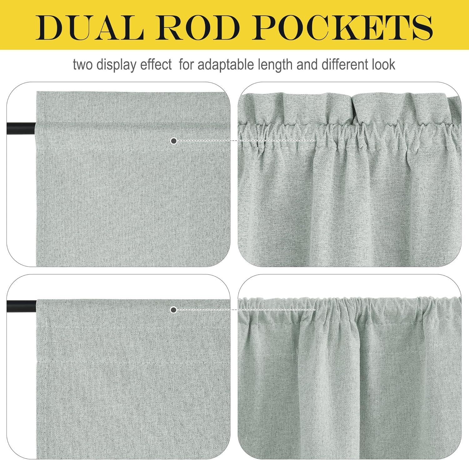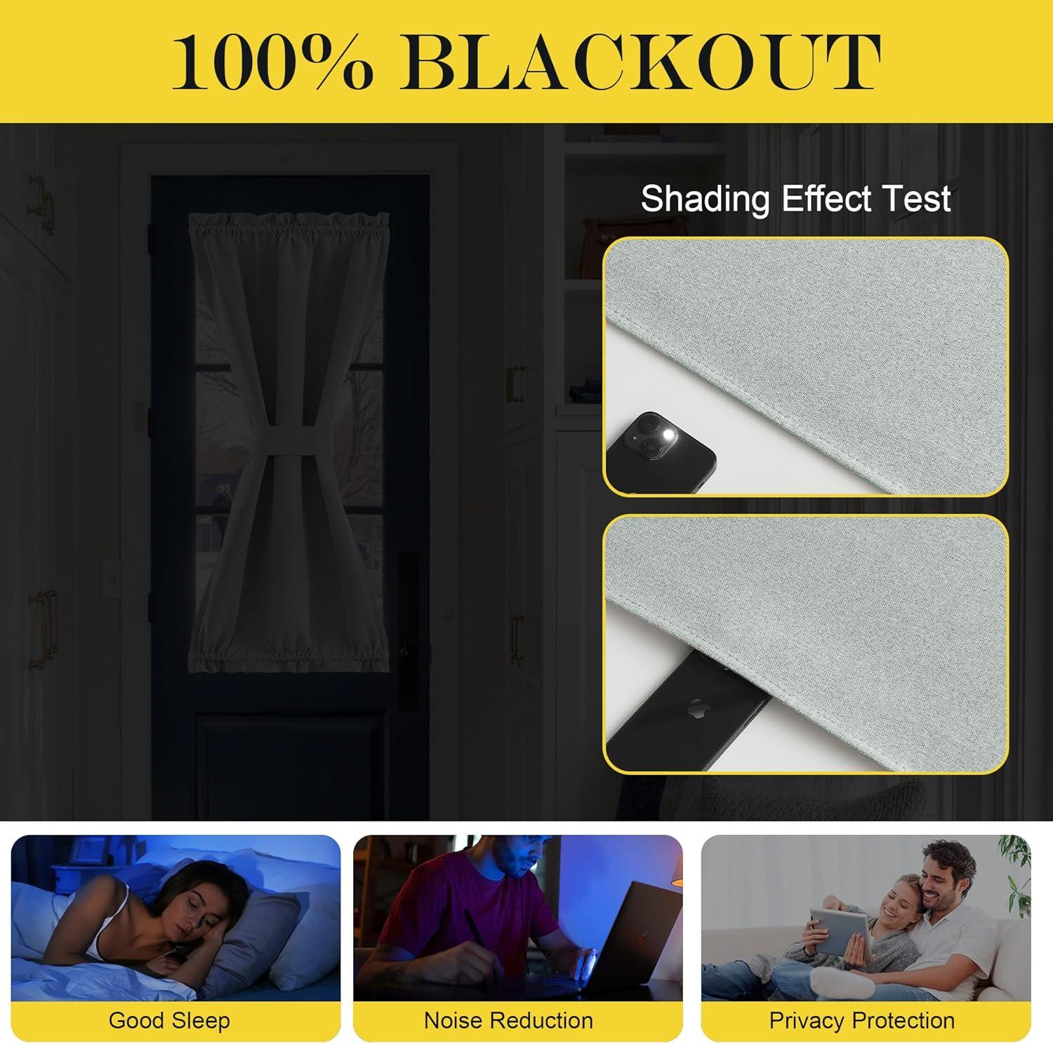NICEETOWN 100% Blackout Door Curtain, Light Green Linen Blended Privacy French Short Door Curtain for Patio Sidelight Shade for Glass, 25 x 40 inches, 1 Panel(Grey)