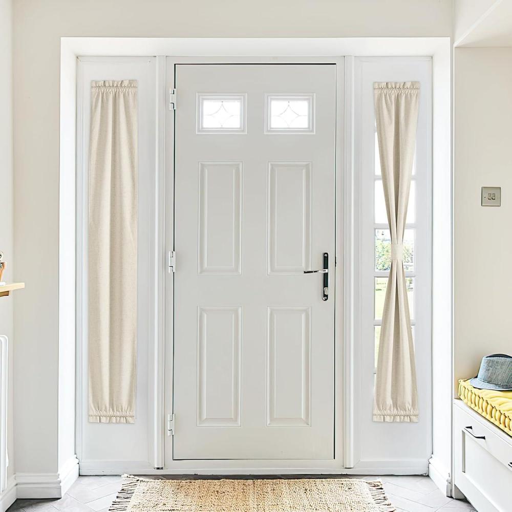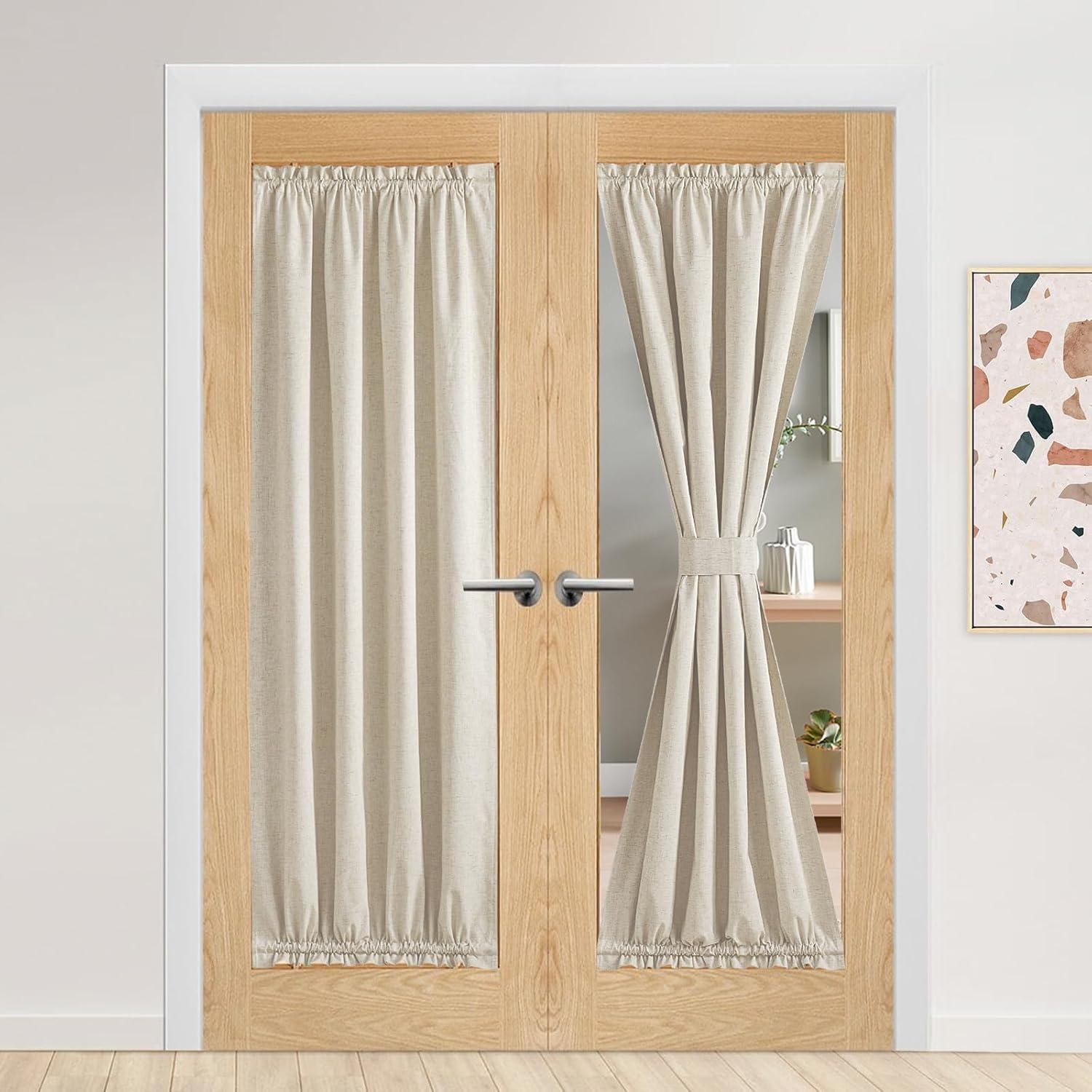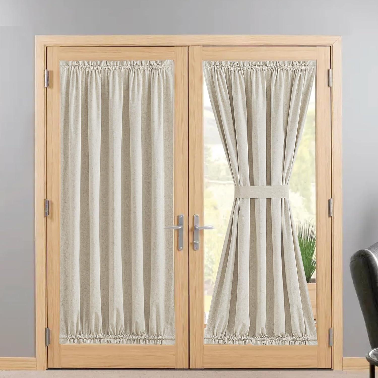 imageNICEETOWN 100 Blackout Door Curtain Light Green Linen Blended Privacy French Short Door Curtain for Patio Sidelight Shade for Glass 25 x 40 inches 1 PanelNatural Beige