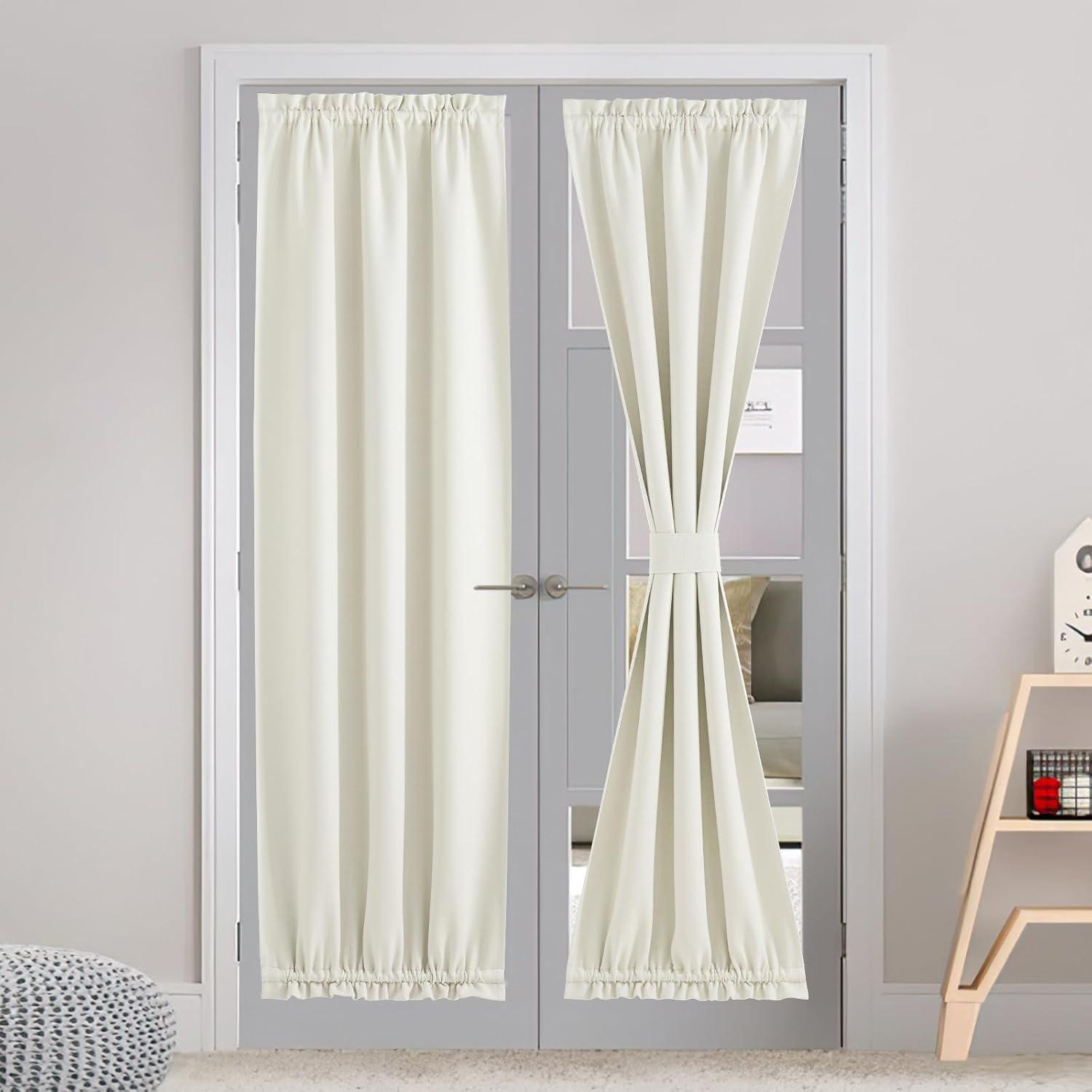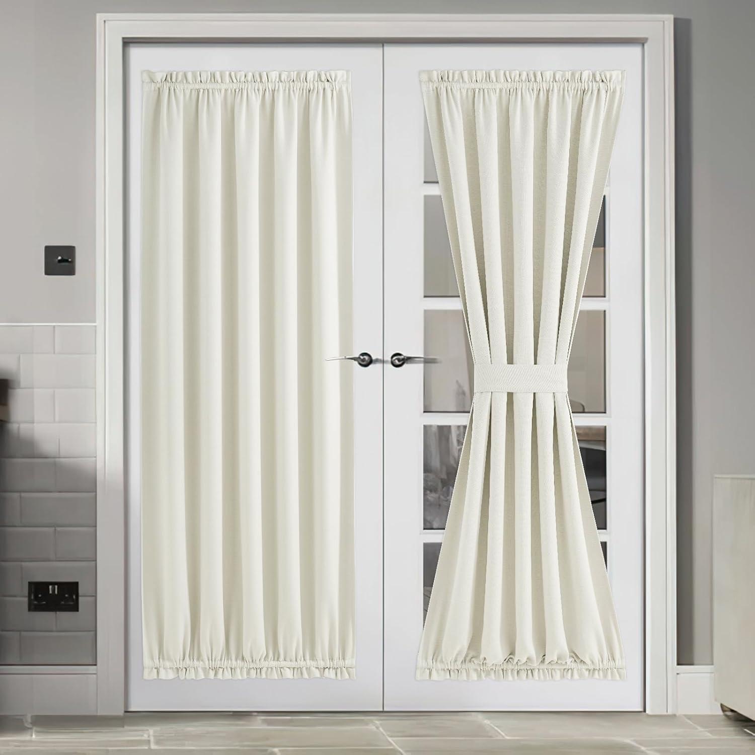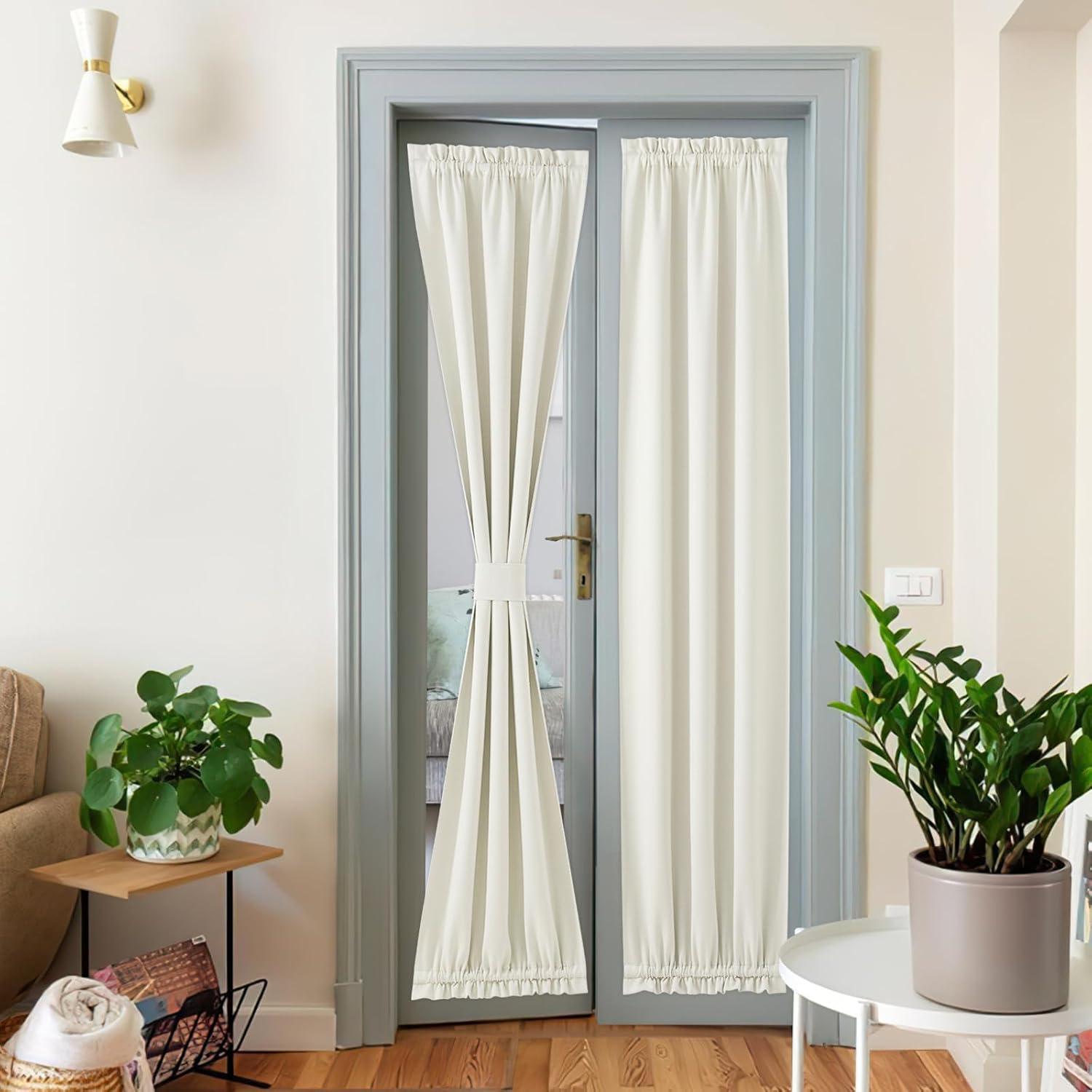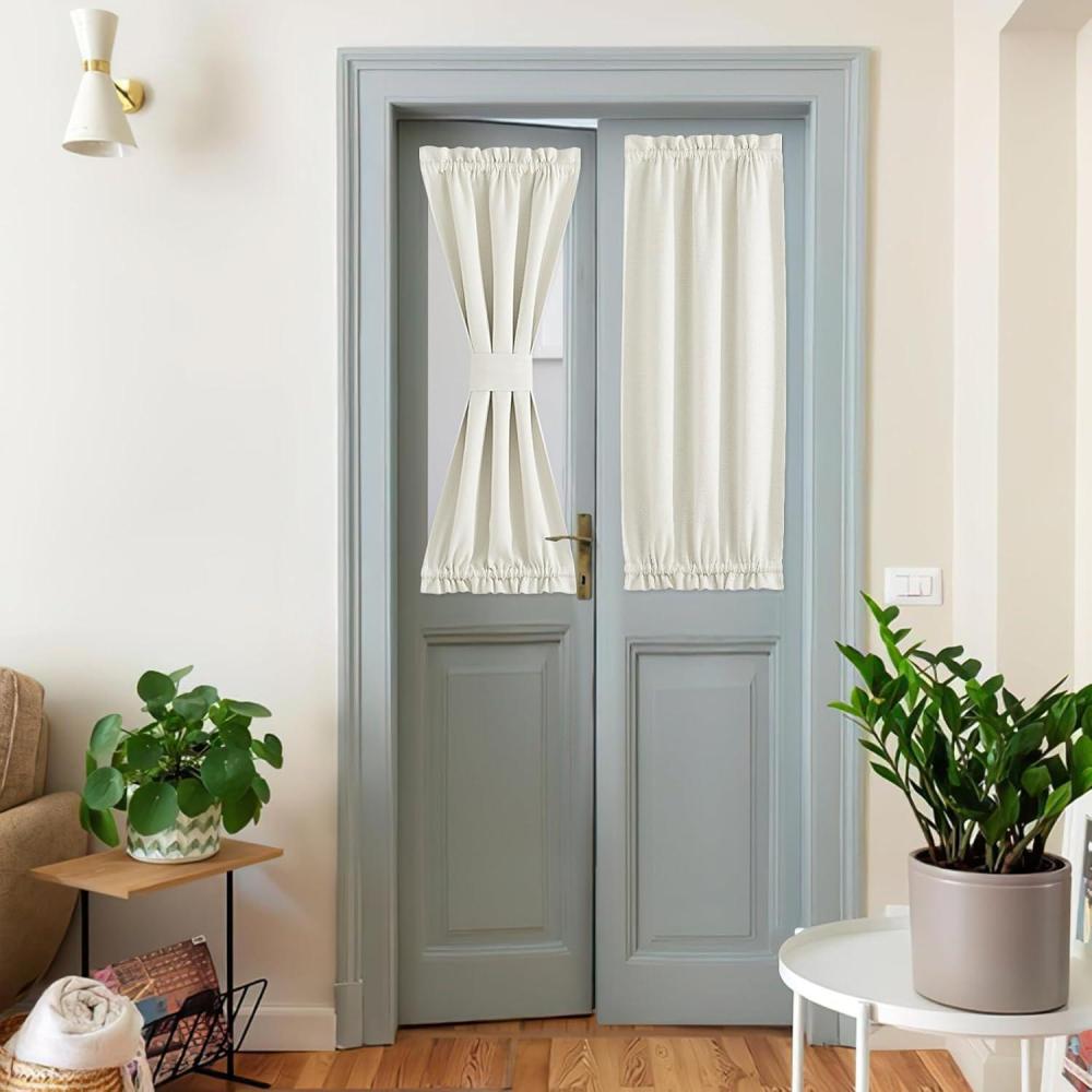 imageNICEETOWN 100 Blackout Door Curtain Light Green Linen Blended Privacy French Short Door Curtain for Patio Sidelight Shade for Glass 25 x 40 inches 1 PanelNatural Beige