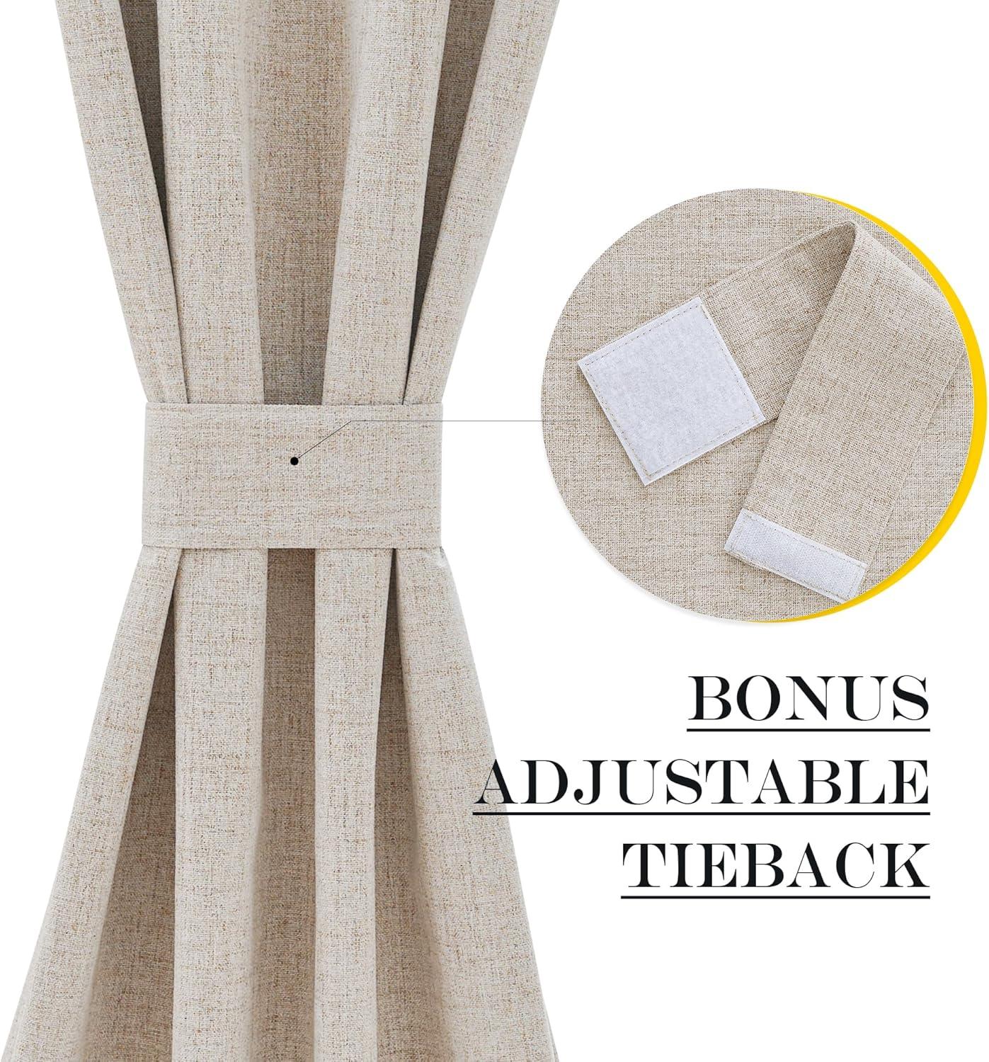 100% Blackout: The real blackout door curtains on the market. Linen blackout curtains crafted with white liner backing make the drapes completely keep out the 100% sunlight and UV ray. Protect your furniture from color fading due to sunlight exposition.