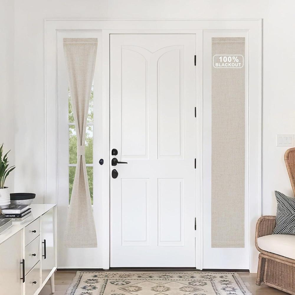 imageNICEETOWN 100 Blackout Door Curtain Light Green Linen Blended Privacy French Short Door Curtain for Patio Sidelight Shade for Glass 25 x 40 inches 1 PanelOatmeal