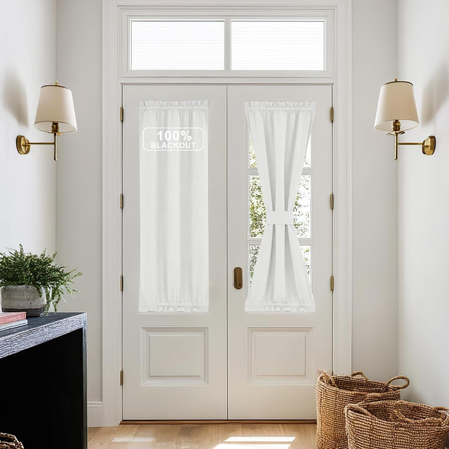 imageNICEETOWN 100 Blackout Door Curtain Light Green Linen Blended Privacy French Short Door Curtain for Patio Sidelight Shade for Glass 25 x 40 inches 1 PanelWhite