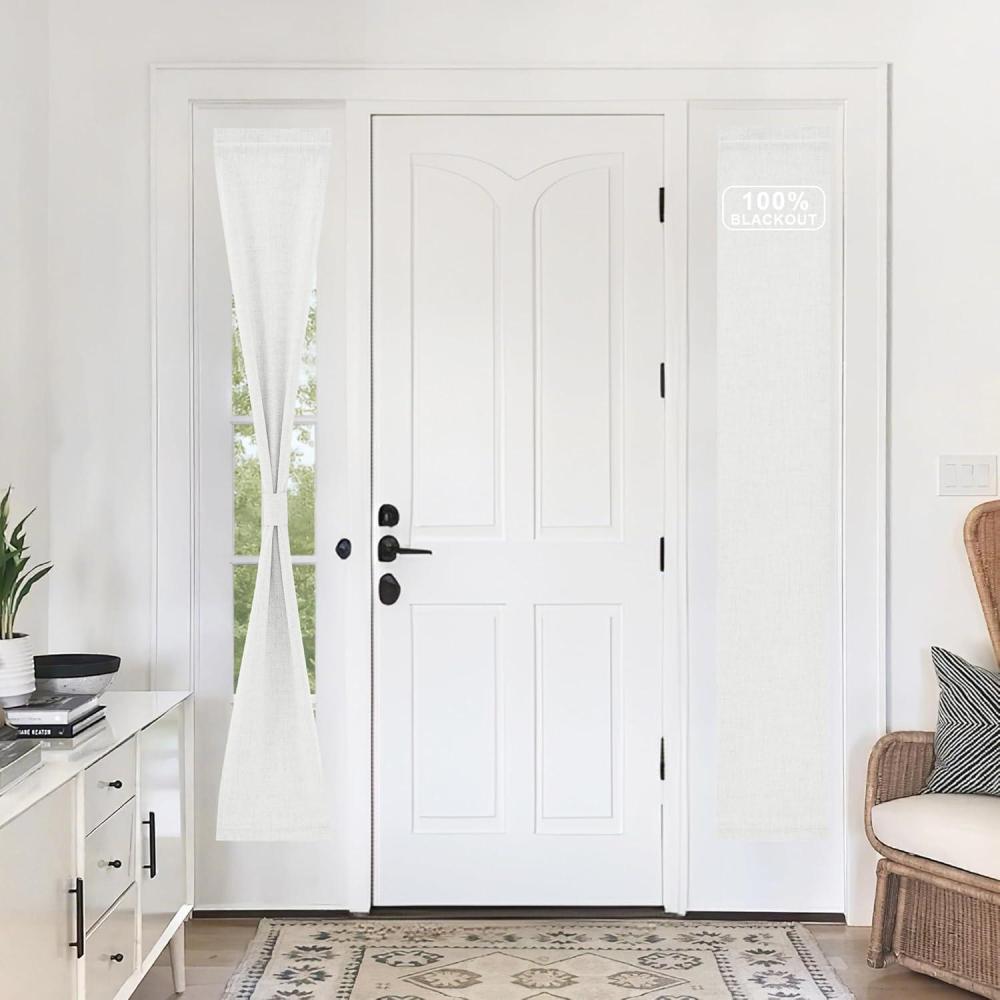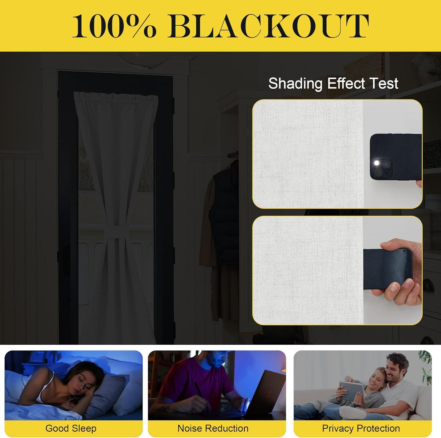 100% Blackout: The real blackout door curtains on the market. Linen blackout curtains crafted with white liner backing make the drapes completely keep out the 100% sunlight and UV ray. Protect your furniture from color fading due to sunlight exposition.
