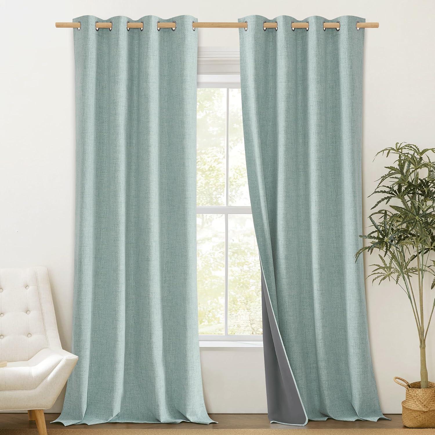 NICETOWN 100% Absolutely Blackout Linen Curtains with Thermal Insulated Liner, Seafoam Green, 52″ Wide, 102″ Length Energy Saving Curtains for Living Room 2 Panels Set, Vertical Blinds