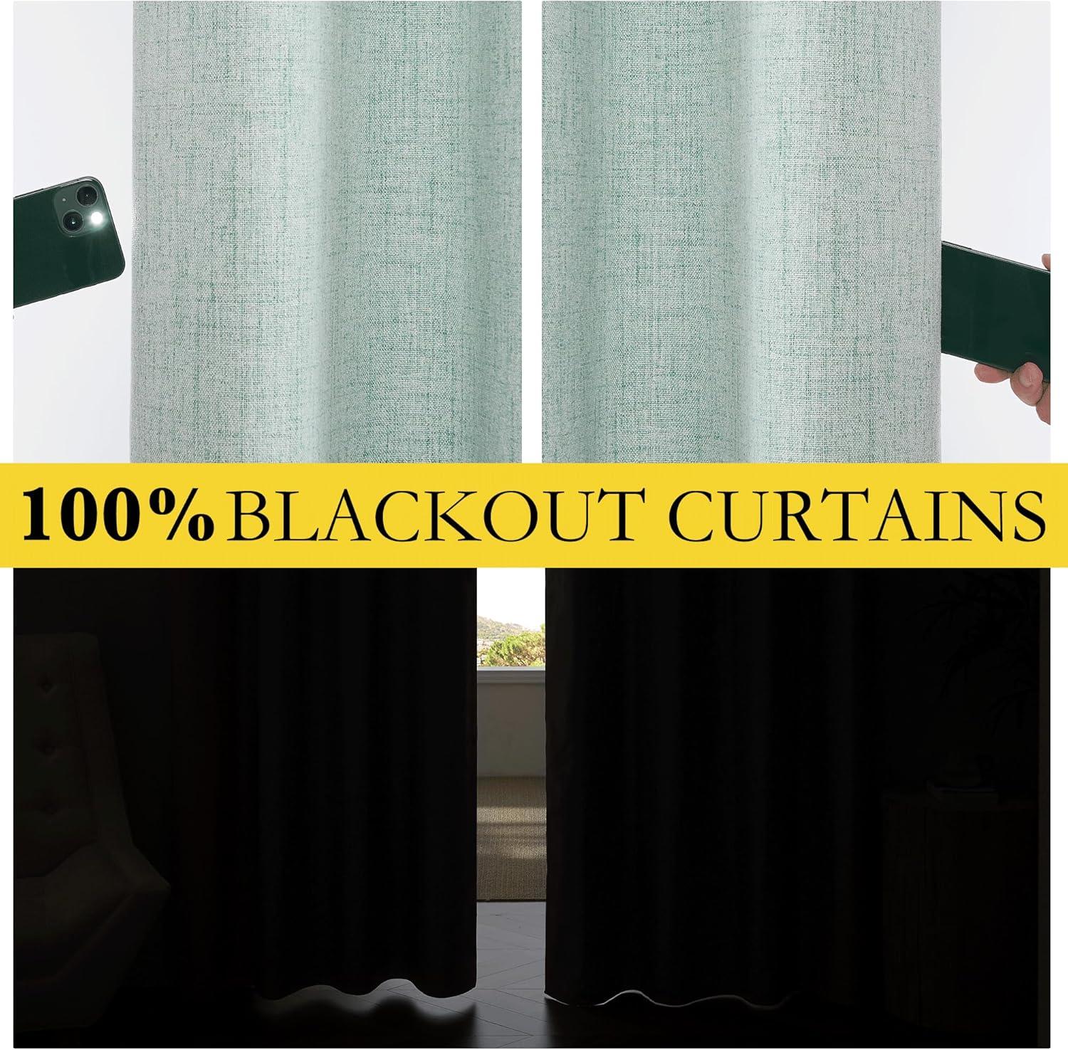 NICETOWN 100% Absolutely Blackout Linen Curtains with Thermal Insulated Liner, Seafoam Green, 52" Wide, 102" Length Energy Saving Curtains for Living Room 2 Panels Set, Vertical Blinds