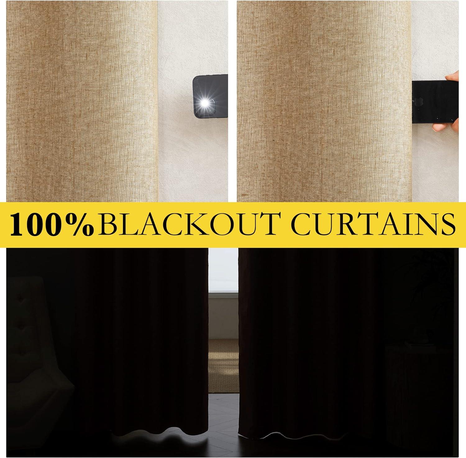 NICETOWN 100% Absolutely Blackout Linen Curtains with Thermal Insulated White Liner, Camel, W34 x L80, 2 Panels, Long Curtains 80 inch Length for Patio Door, Doorway, Office, Overnight Shiftworker