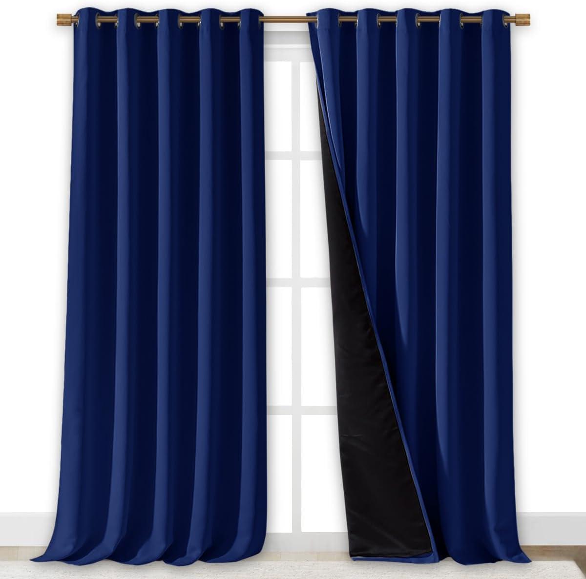 NICETOWN 100% Blackout Blinds, Set of 2, 70 inches x 108 inches, Royal Blue, Laundry Room Decor Window Treatment Curtains for Large Patio Sliding Door, Thermal Insulated Curtains for Bedroom