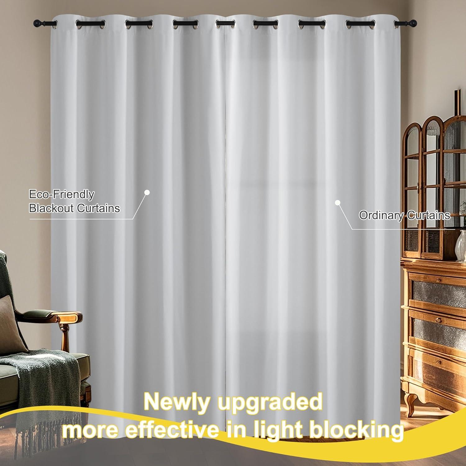 SET DETAILS: Set of 2 panels blackout curtains per package. Each curtain measures 52 inch wide by 90 inch long with 8 silver metal grommets (1.6 inch inner diameter) on top, available in a variety of stylish colors. Easy to install and slide.
