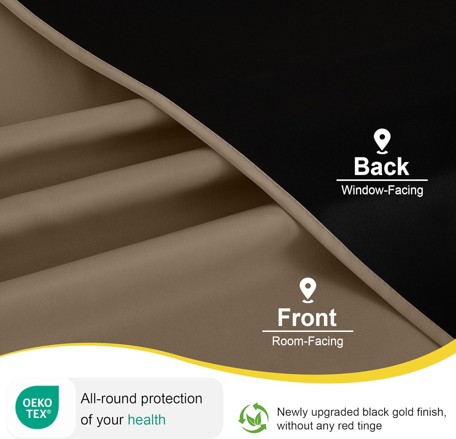 100% BLACKOUT: These curtains are manufactured in a STANDARD 100 certified by the OEKO TEX factory. The curtains can block out 100% bright sunlight and UV ray, bring you a full room darkening environment for good night sleep, afternoon nap and weekend lie-ins.