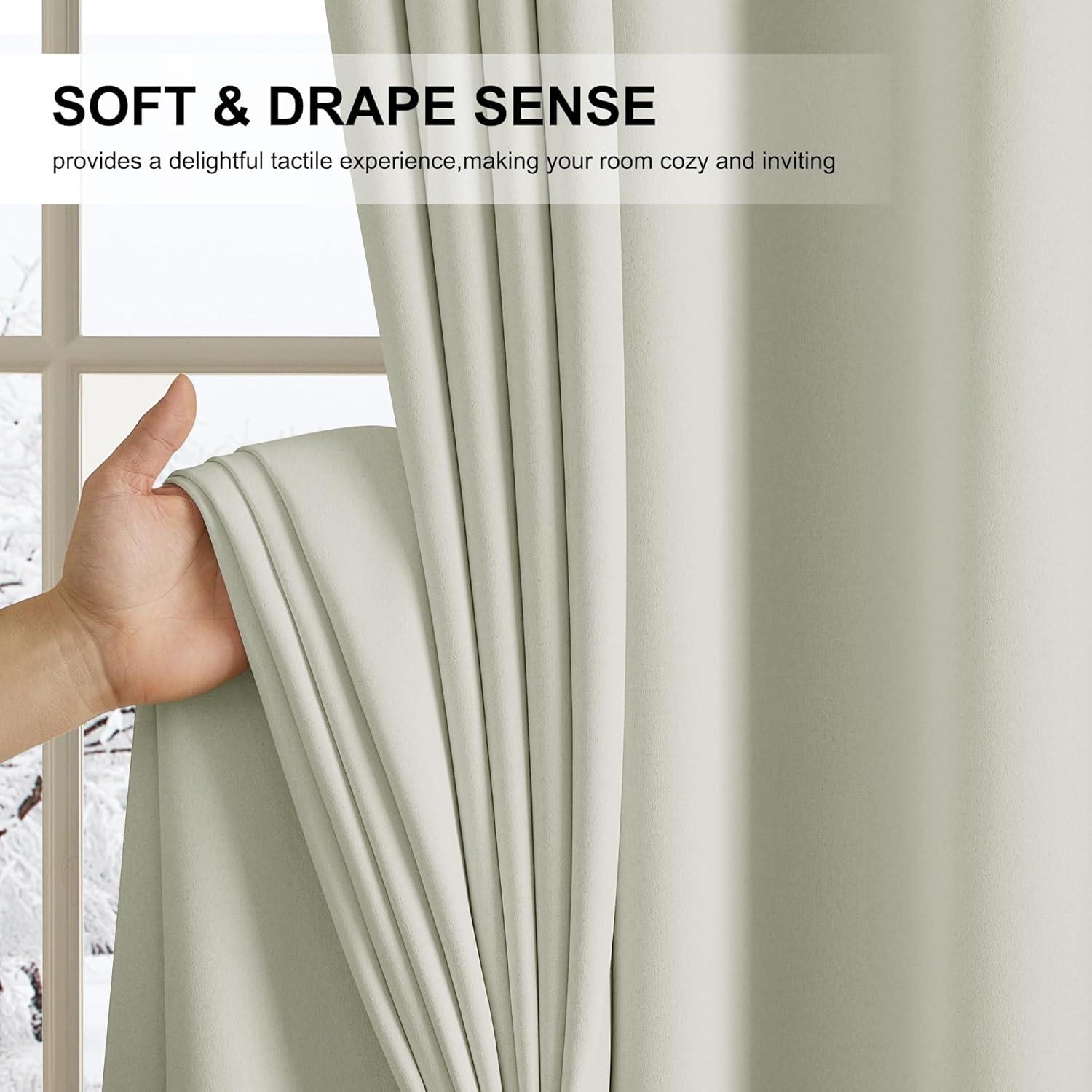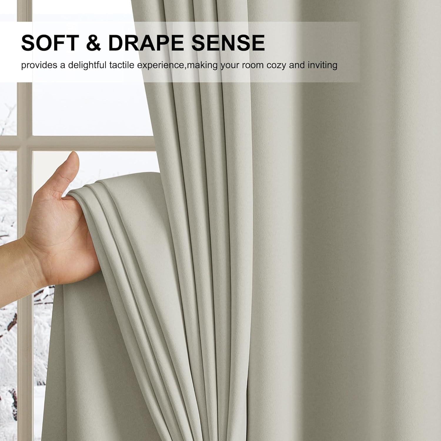 imageNICETOWN 100 Blackout Curtains 90 Inch Length for Bedroom Privacy Thermal Insulated Grommet Room Darkening Window Drapes for Living Room 2 Panels Stone Blue 52 x 90 InchLight Beige