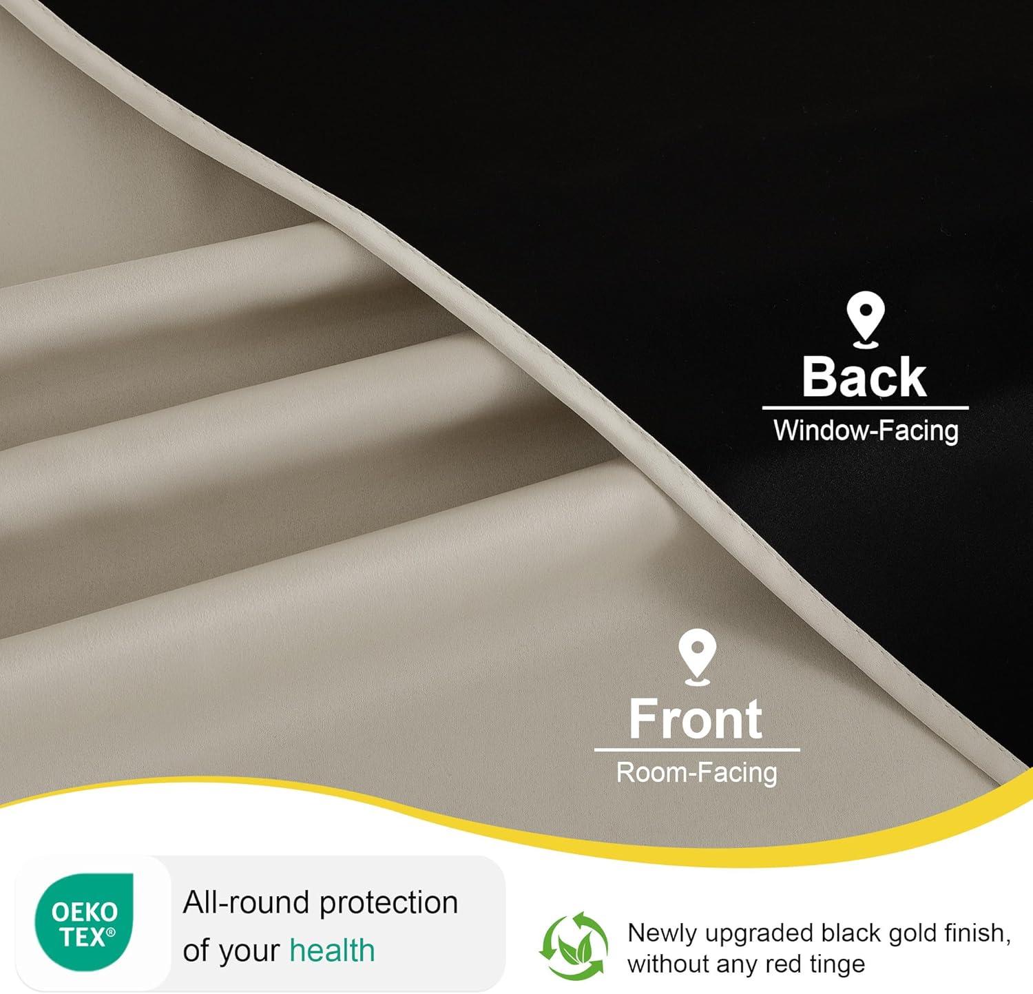 100% BLACKOUT: These curtains are manufactured in a STANDARD 100 certified by the OEKO TEX factory. The curtains can block out 100% bright sunlight and UV ray, bring you a full room darkening environment for good night sleep, afternoon nap and weekend lie-ins.