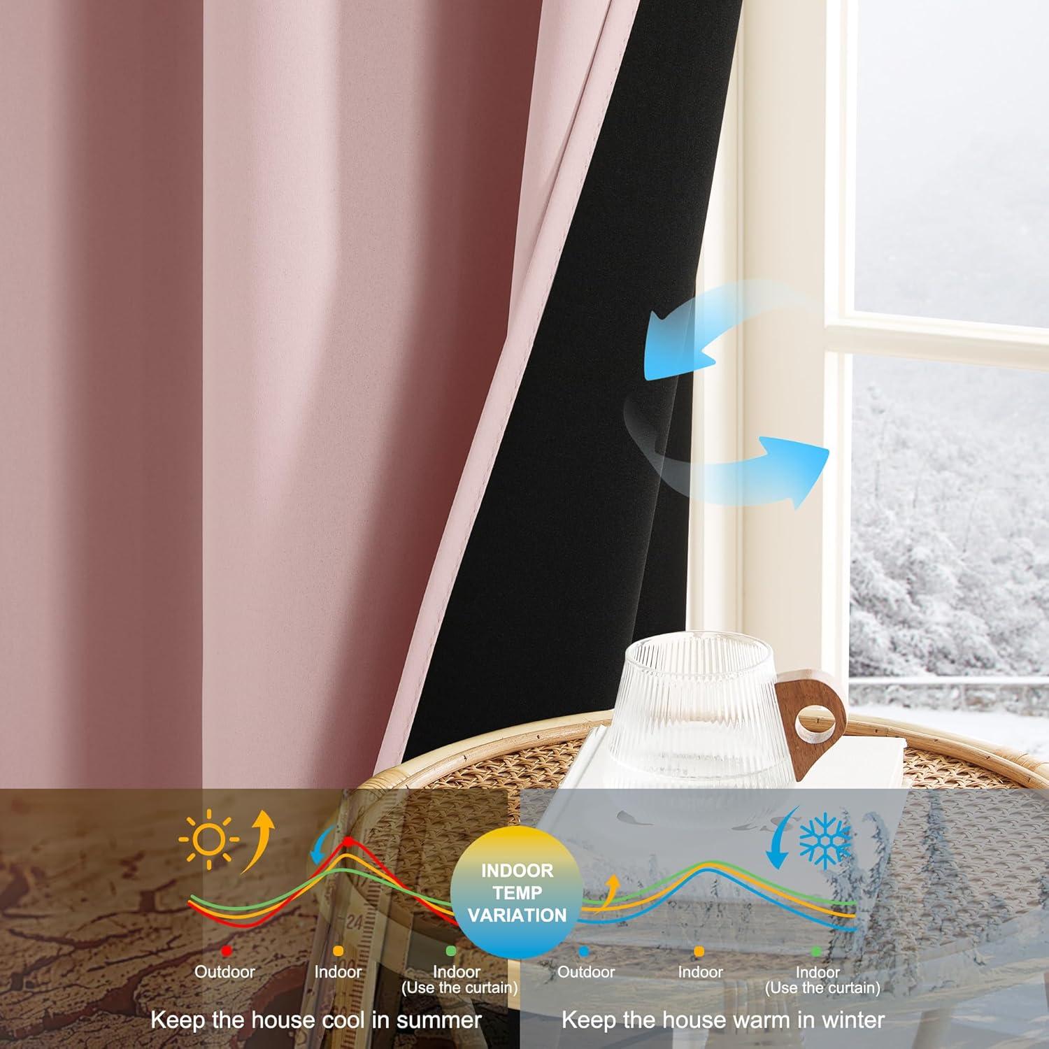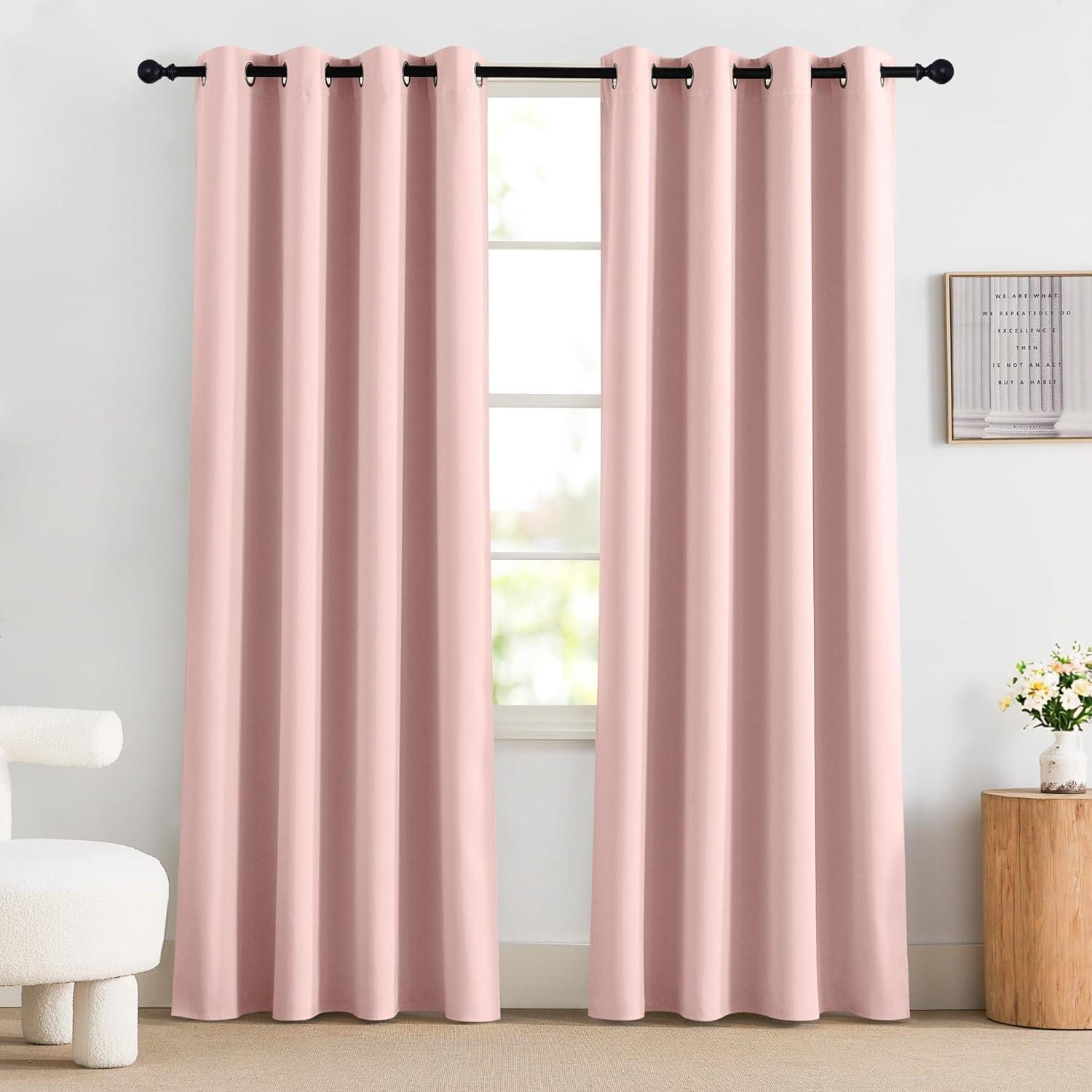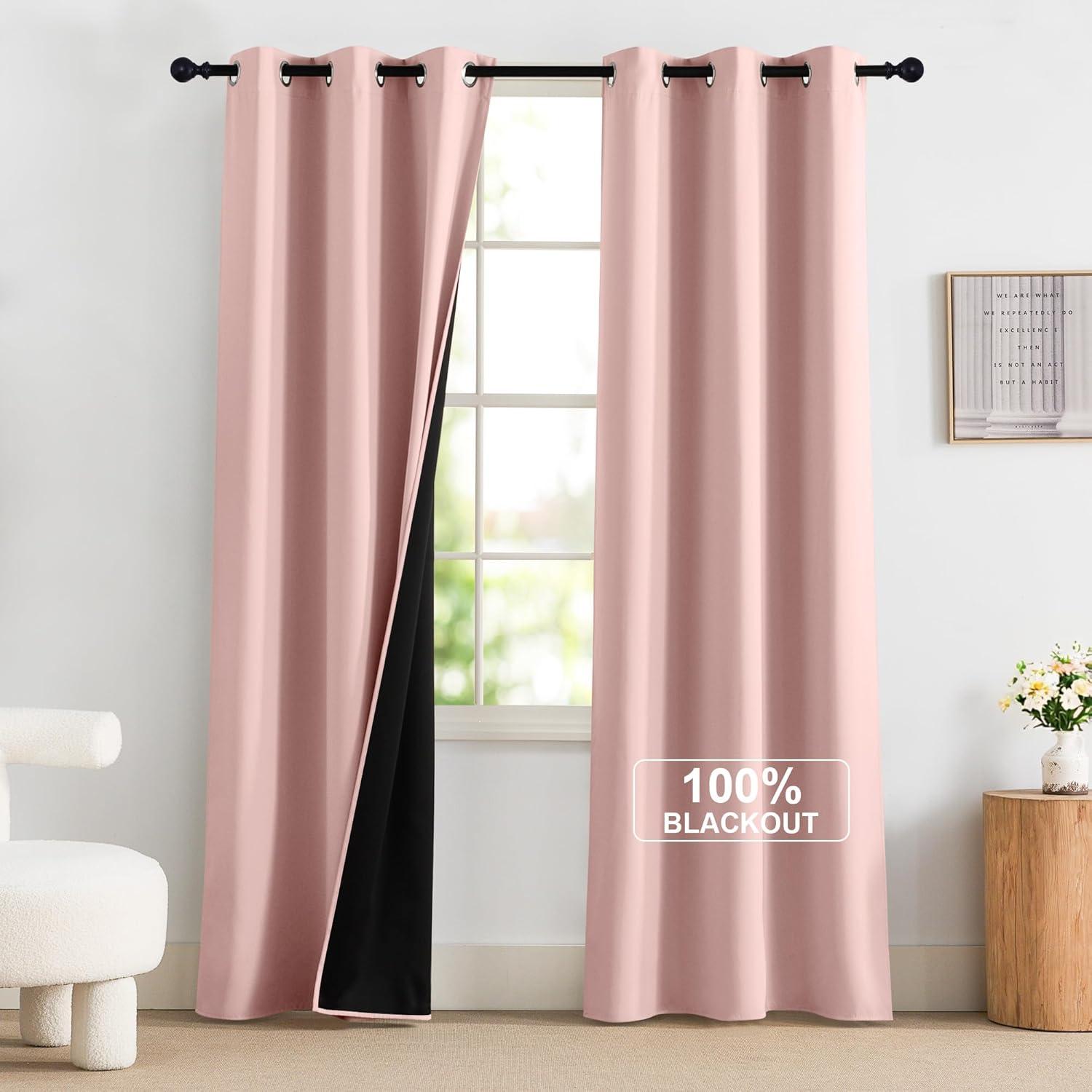 NICETOWN 100% Blackout Curtains 90 Inch Length for Bedroom, Privacy Thermal Insulated Grommet Room Darkening Window Drapes for Living Room, 2 Panels, Stone Blue, 52 x 90 Inch(Pink)