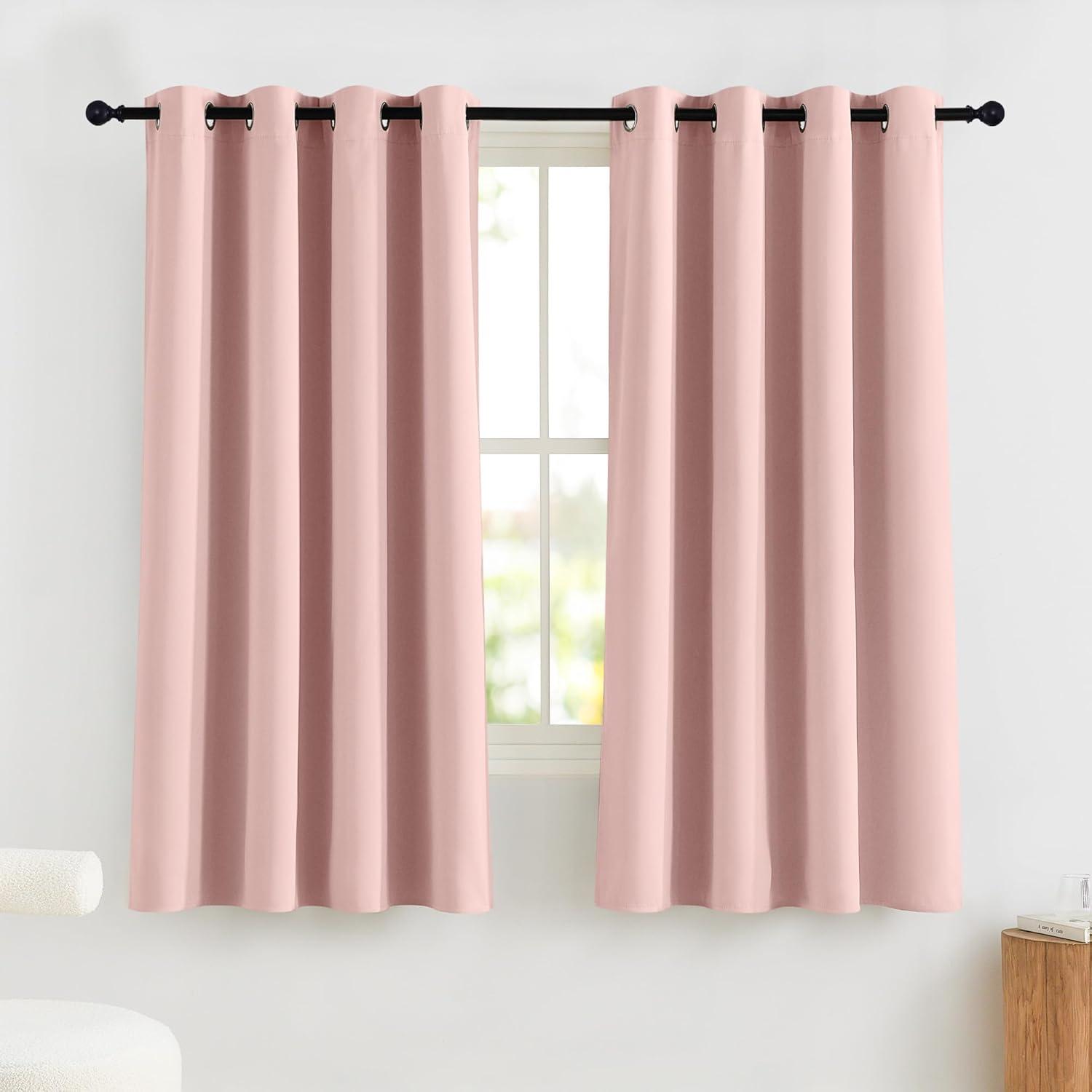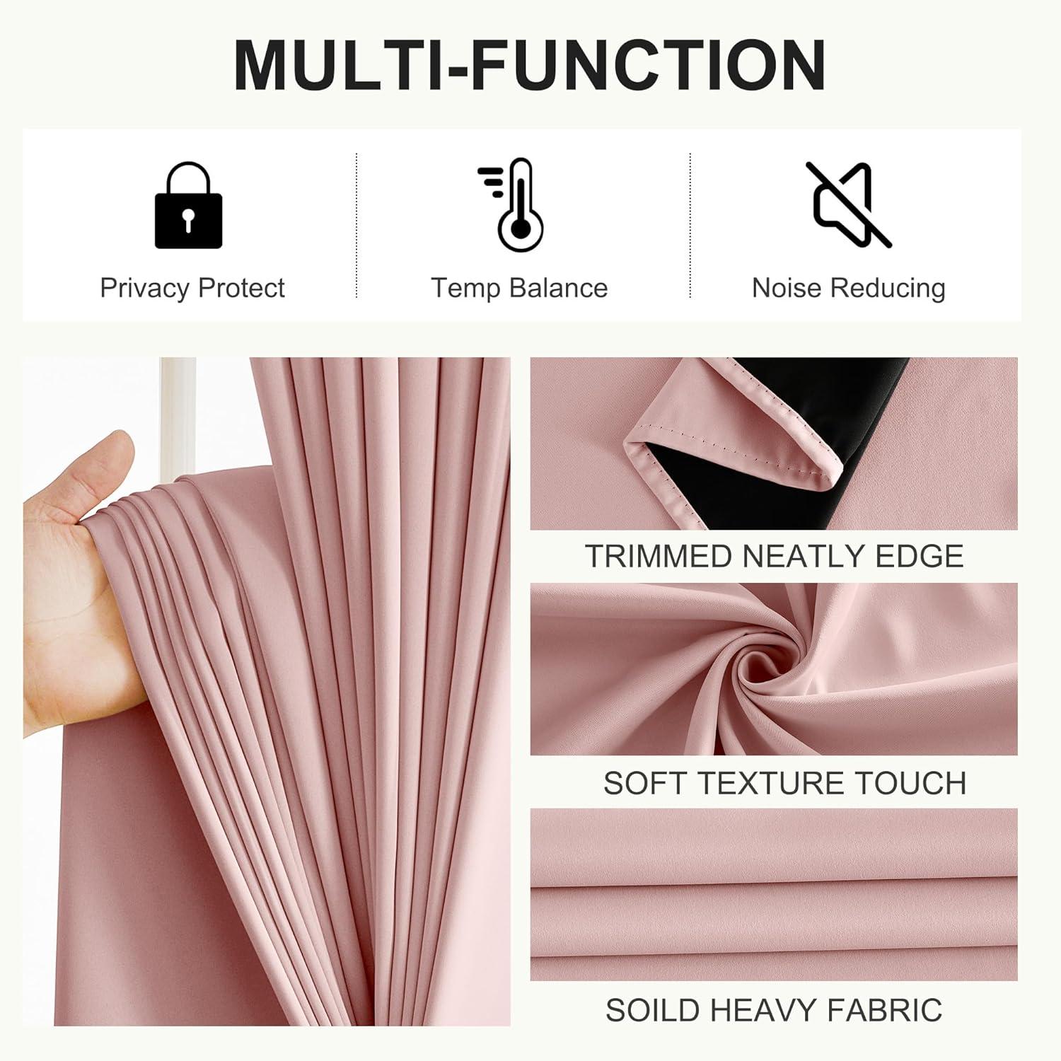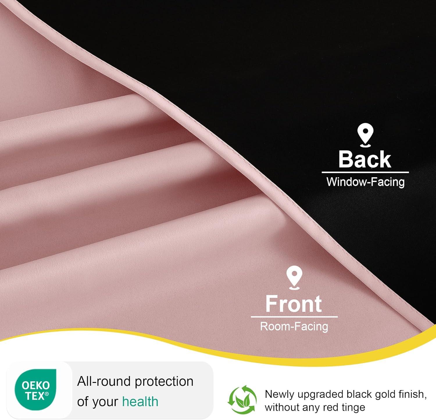 NICETOWN 100% Blackout Curtains 90 Inch Length for Bedroom, Privacy Thermal Insulated Grommet Room Darkening Window Drapes for Living Room, 2 Panels, Stone Blue, 52 x 90 Inch(Pink)