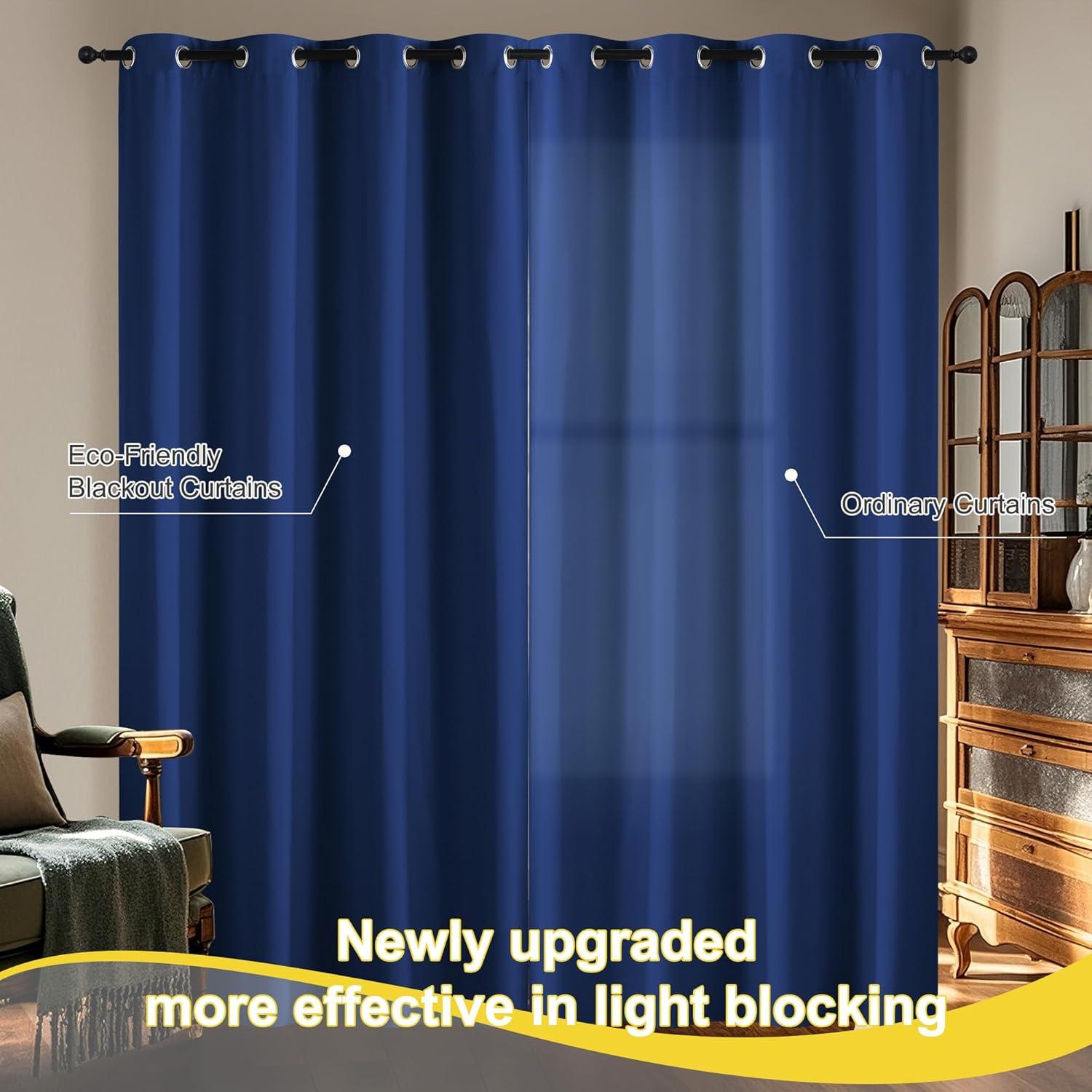 NICETOWN 100% Blackout Curtains 90 Inch Length for Bedroom, Privacy Thermal Insulated Grommet Room Darkening Window Drapes for Living Room, 2 Panels, Stone Blue, 52 x 90 Inch(Royal Blue)
