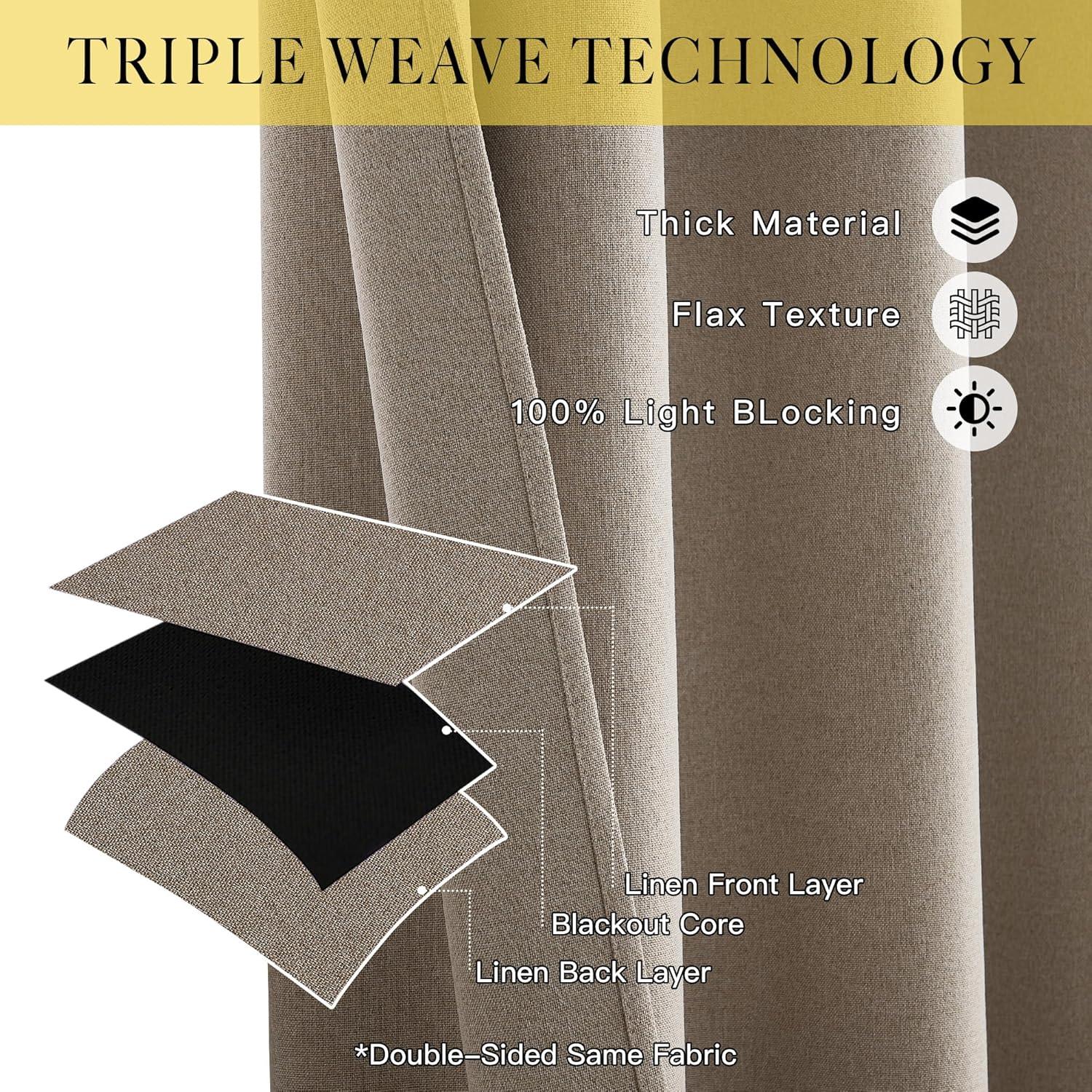 NICETOWN 100% Blackout Curtains for Bedroom, W52 x L96, Pair, Grey Crisp Faux Linen Thermal Insulated & Energy Efficient Light Blocking Shield for Living Room, Dining Room(Taupe)