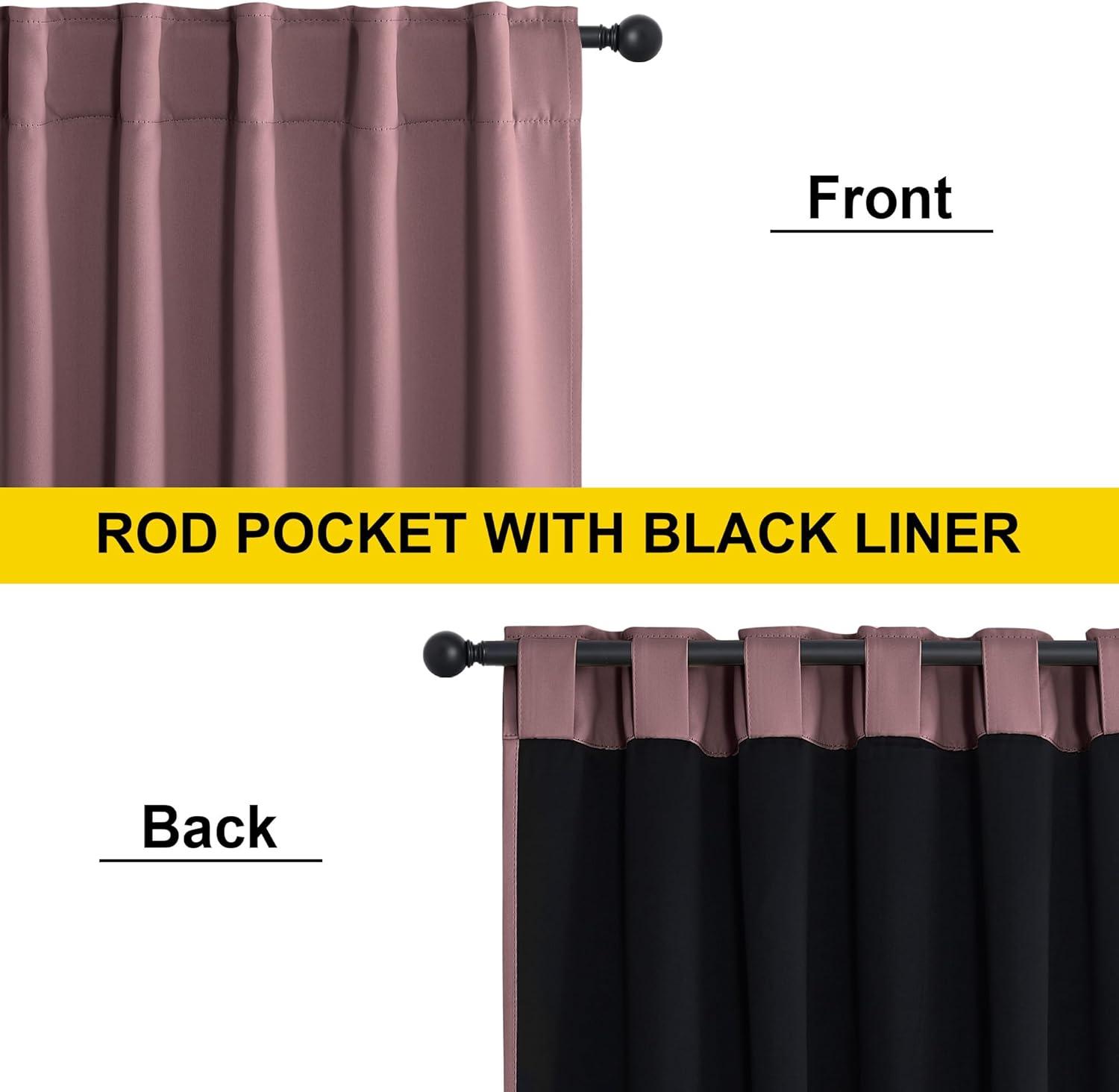imageNICETOWN 100 Blackout Kitchen Curtain Panels Cold and Full Light Blocking Drapes with Black Liner 48 Inches Drop Thermal Insulated Draperies for Cafe White 2 Pieces 37 inches Wide Each PanelDry Rose