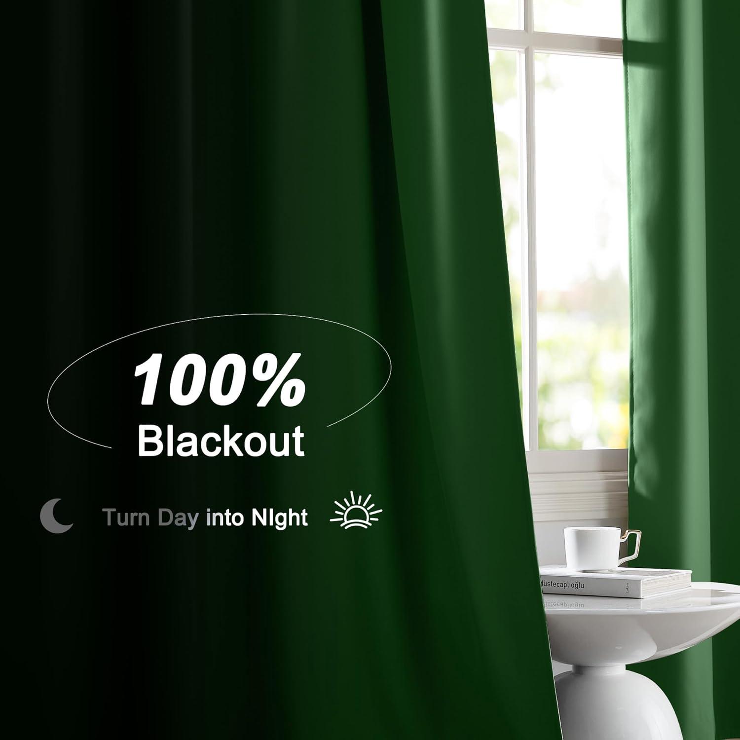 NICETOWN 100% Blackout Kitchen Curtain Panels, Cold and Full Light Blocking Drapes with Black Liner, 48 Inches Drop Thermal Insulated Draperies for Cafe (White, 2 Pieces, 37 inches Wide Each Panel)(Forest Green)