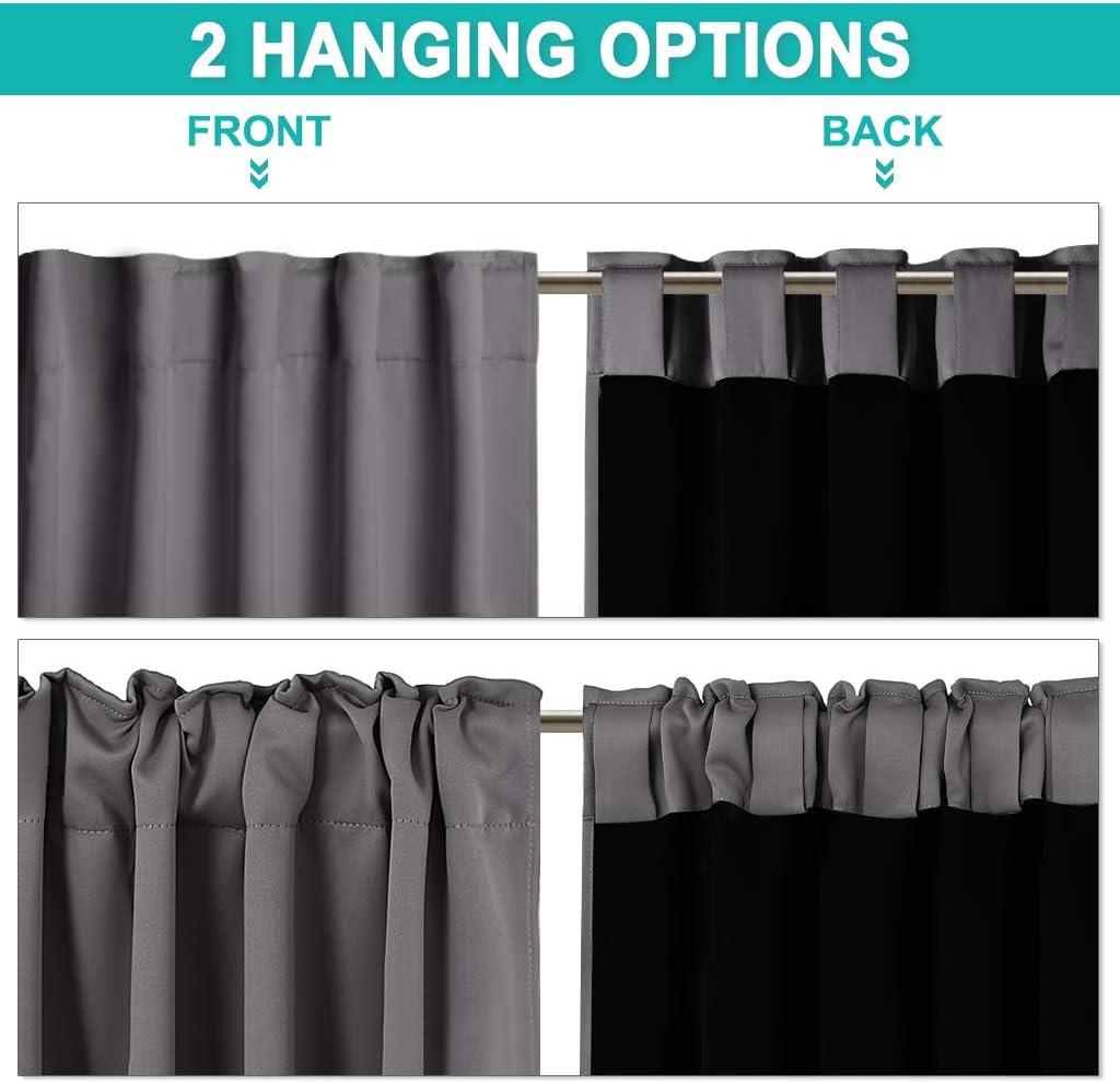 NICETOWN 100% Blackout Kitchen Curtain Panels, Cold and Full Light Blocking Drapes with Black Liner, 48 Inches Drop Thermal Insulated Draperies for Cafe (White, 2 Pieces, 37 inches Wide Each Panel)(Grey)