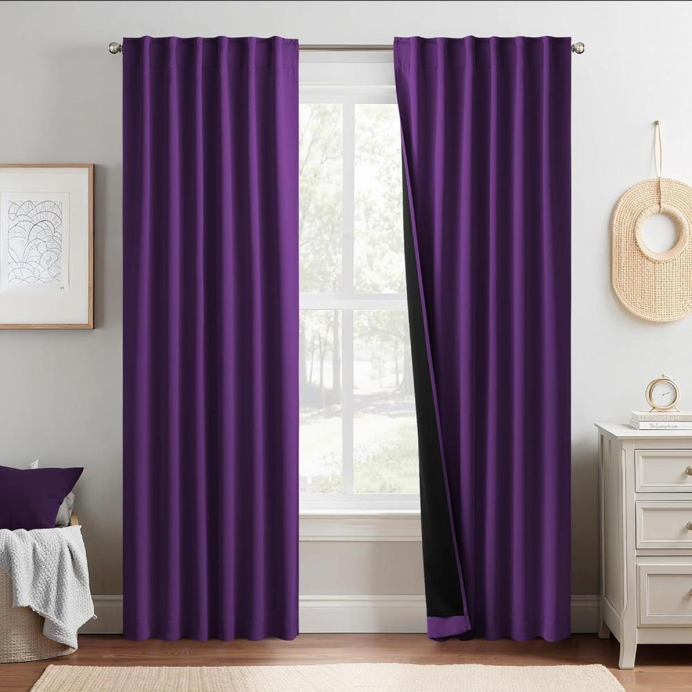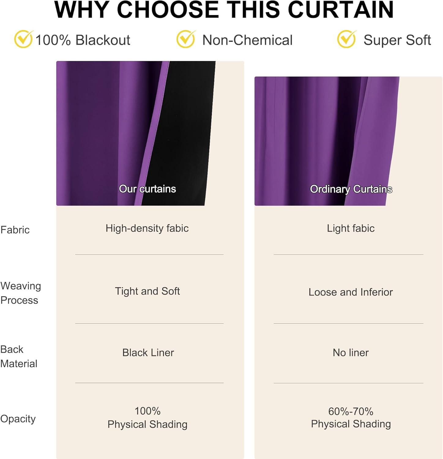 100% BLACKOUT: Sew in black liner backing makes the drapes thick enough to completely keep out the 100% SUNLIGHT and UV RAY. The greatest benefit is to offer you a real dark environment, bringing you a good night's sleep during the day.