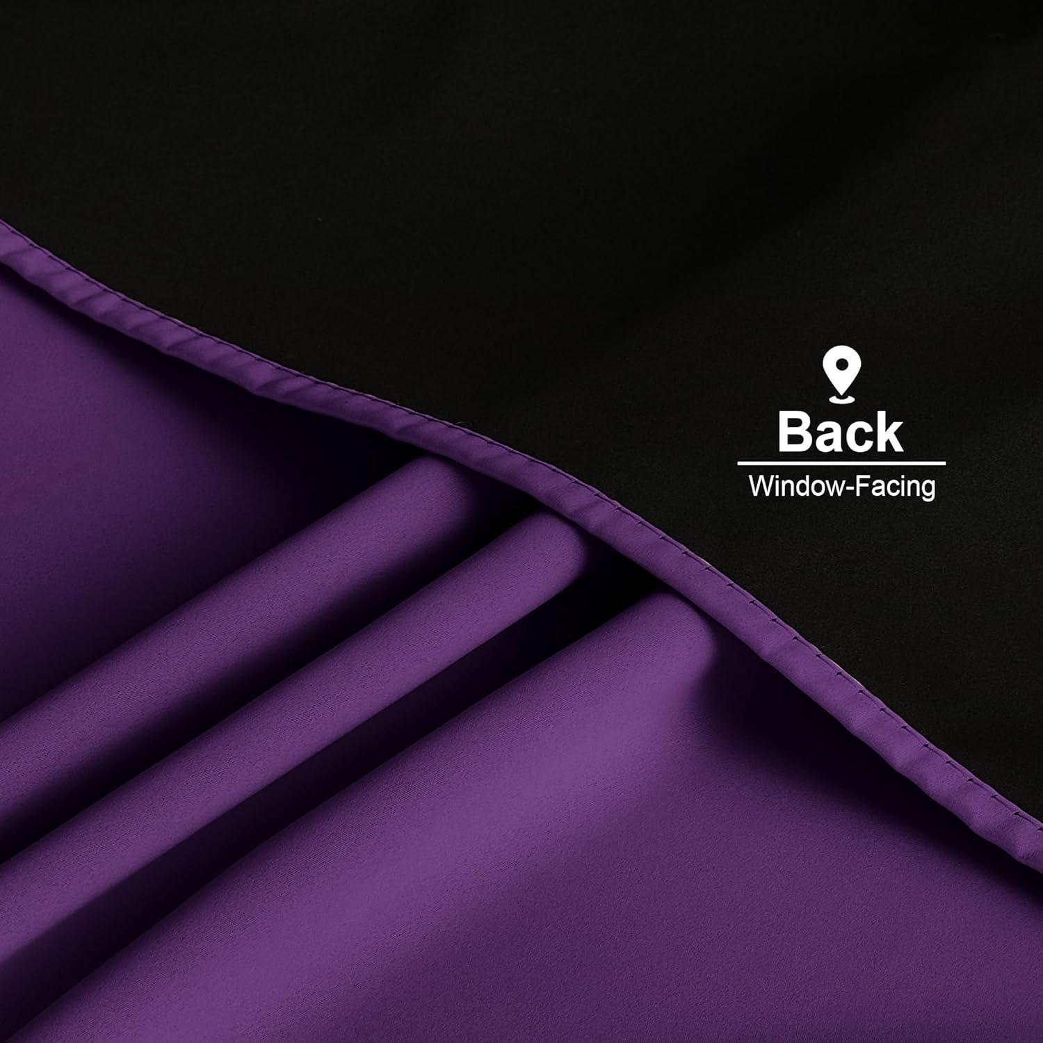 imageNICETOWN 100 Blackout Kitchen Curtain Panels Cold and Full Light Blocking Drapes with Black Liner 48 Inches Drop Thermal Insulated Draperies for Cafe White 2 Pieces 37 inches Wide Each PanelRoyal Purple