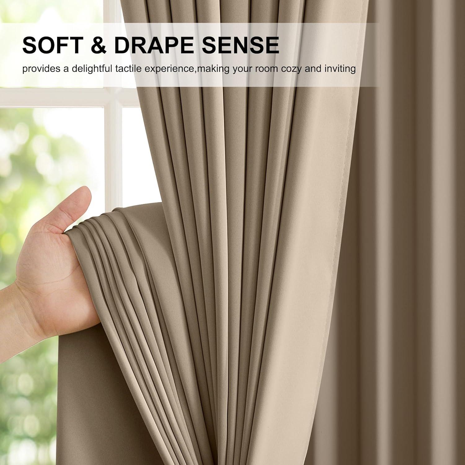 MULTIPLE FUNCTION: Heavyweight Blackout Lined Curtain Panels can be a good sense of drape, making the window completely closed, to achieve noise reduction. These soft and durable curtains feature high performance on thermal insulated, energy-saving and privacy protection.
