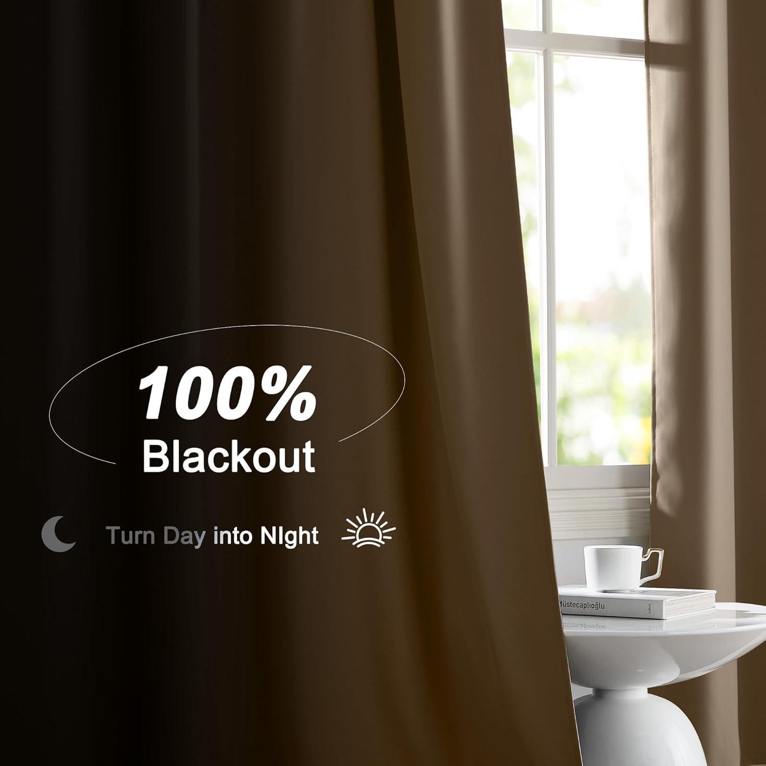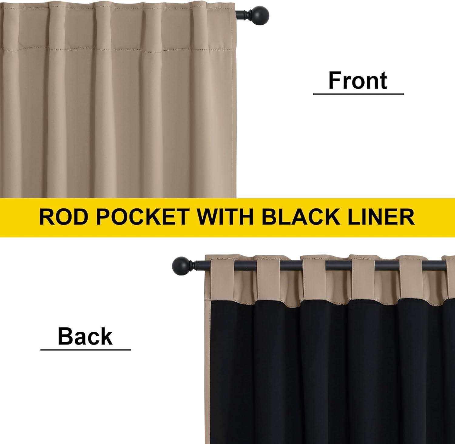 imageNICETOWN 100 Blackout Kitchen Curtain Panels Cold and Full Light Blocking Drapes with Black Liner 48 Inches Drop Thermal Insulated Draperies for Cafe White 2 Pieces 37 inches Wide Each PanelTaupe