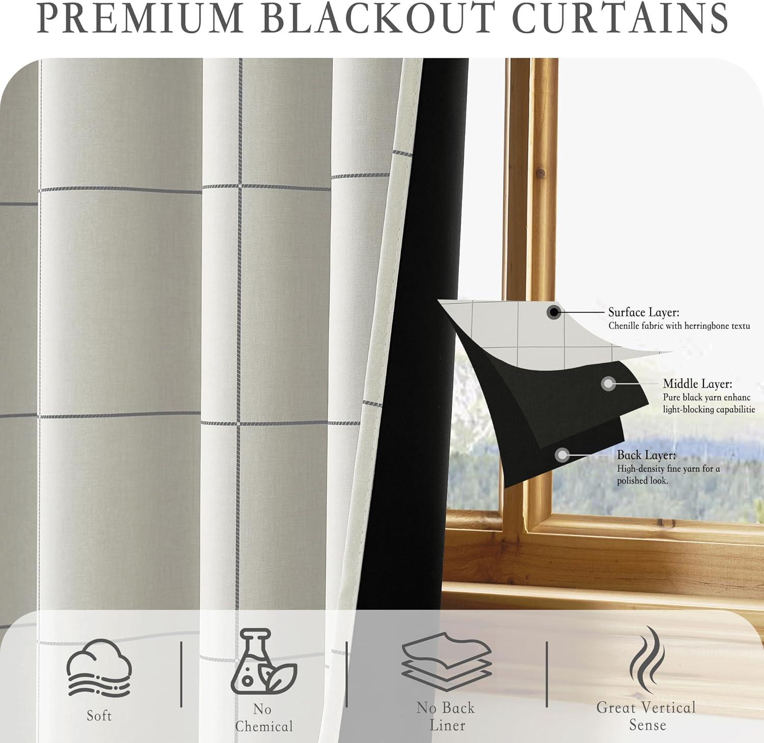 imageNICETOWN 100 Blackout Plaid Curtains 90 inches Long for Bedroom Rod Pocket ampamp Back Tab Brighton Windowpane Pattern Window Treatments for Living Room Taupe W52 x L90 2 PanelsGrey