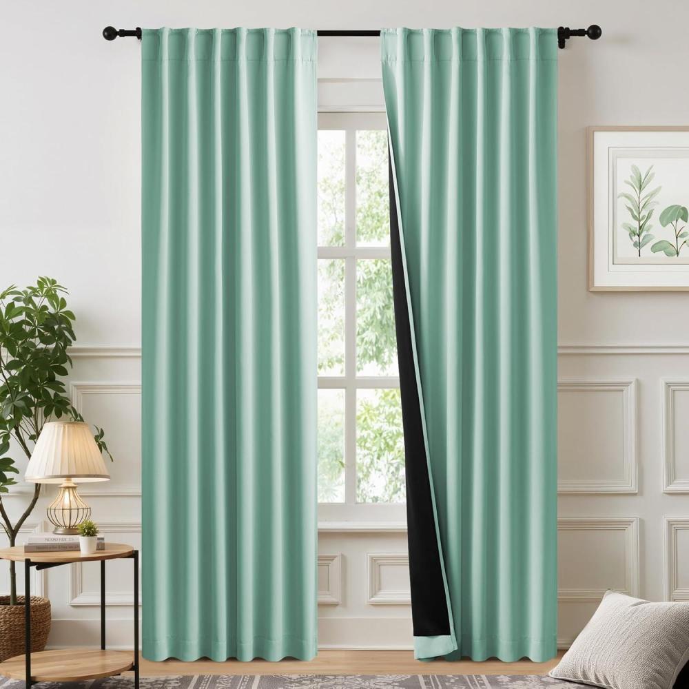 imageNICETOWN 100 Blackout Window Curtain Panels Cold and Full Light Blocking Drapes with Black Liner for Nursery 84 Inches Drop Thermal Insulated Draperies Pure White 2 Pieces 52 inches WideAqua Blue