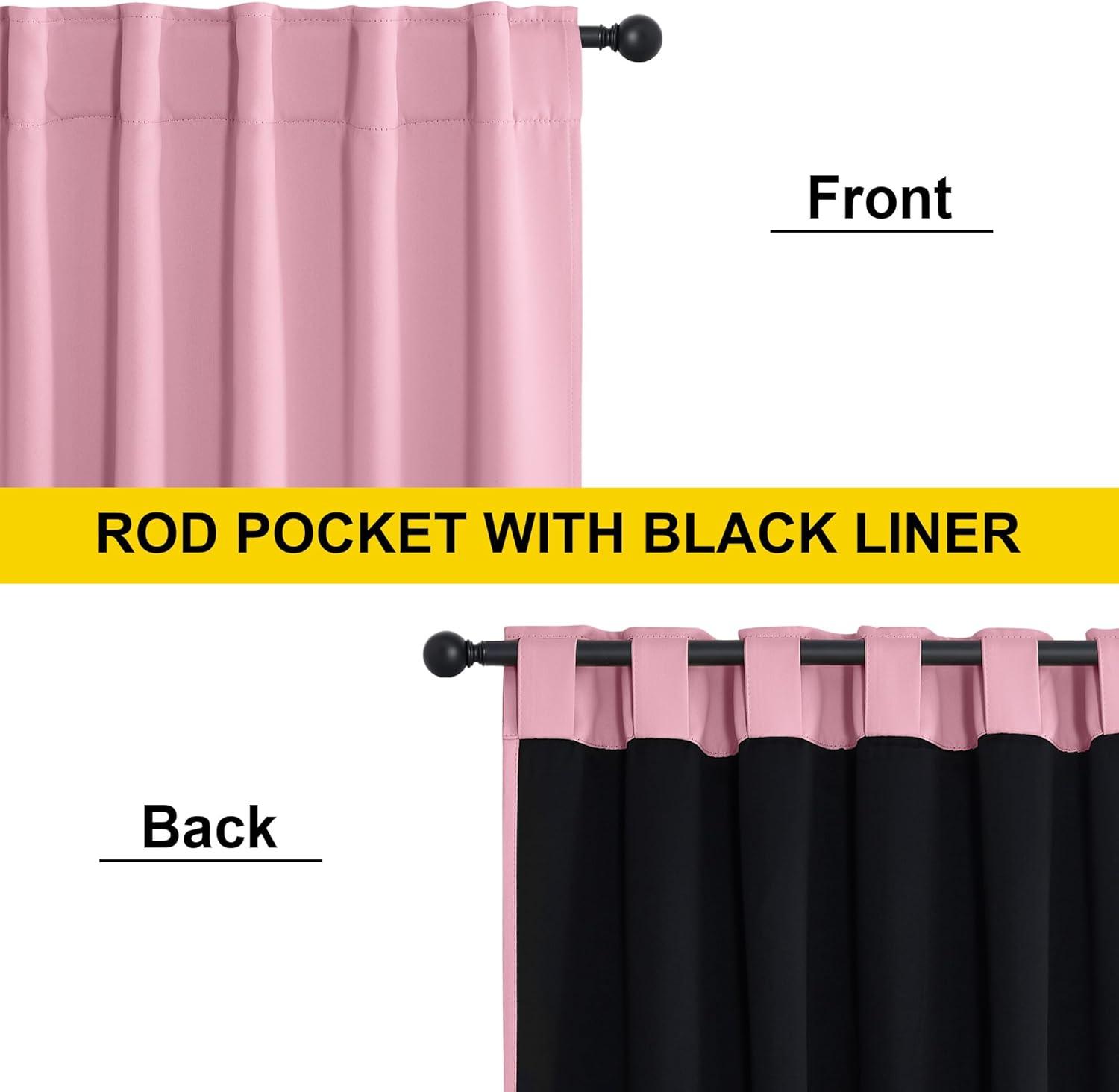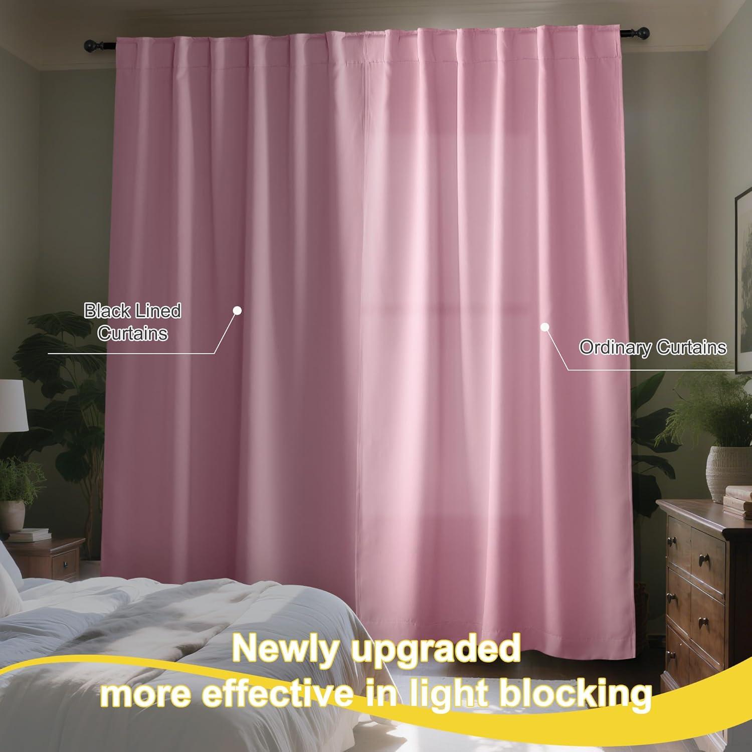 imageNICETOWN 100 Blackout Window Curtain Panels Cold and Full Light Blocking Drapes with Black Liner for Nursery 84 Inches Drop Thermal Insulated Draperies Pure White 2 Pieces 52 inches WideCrystal Pink