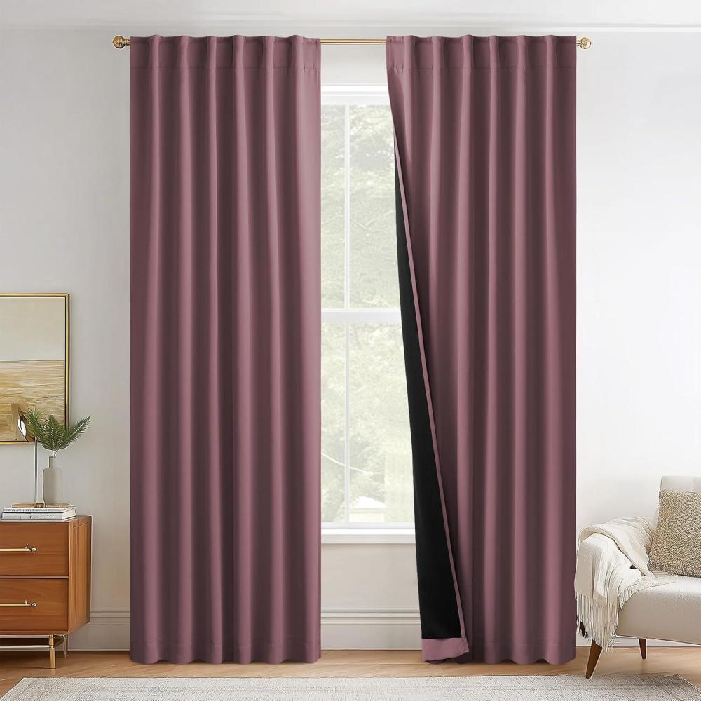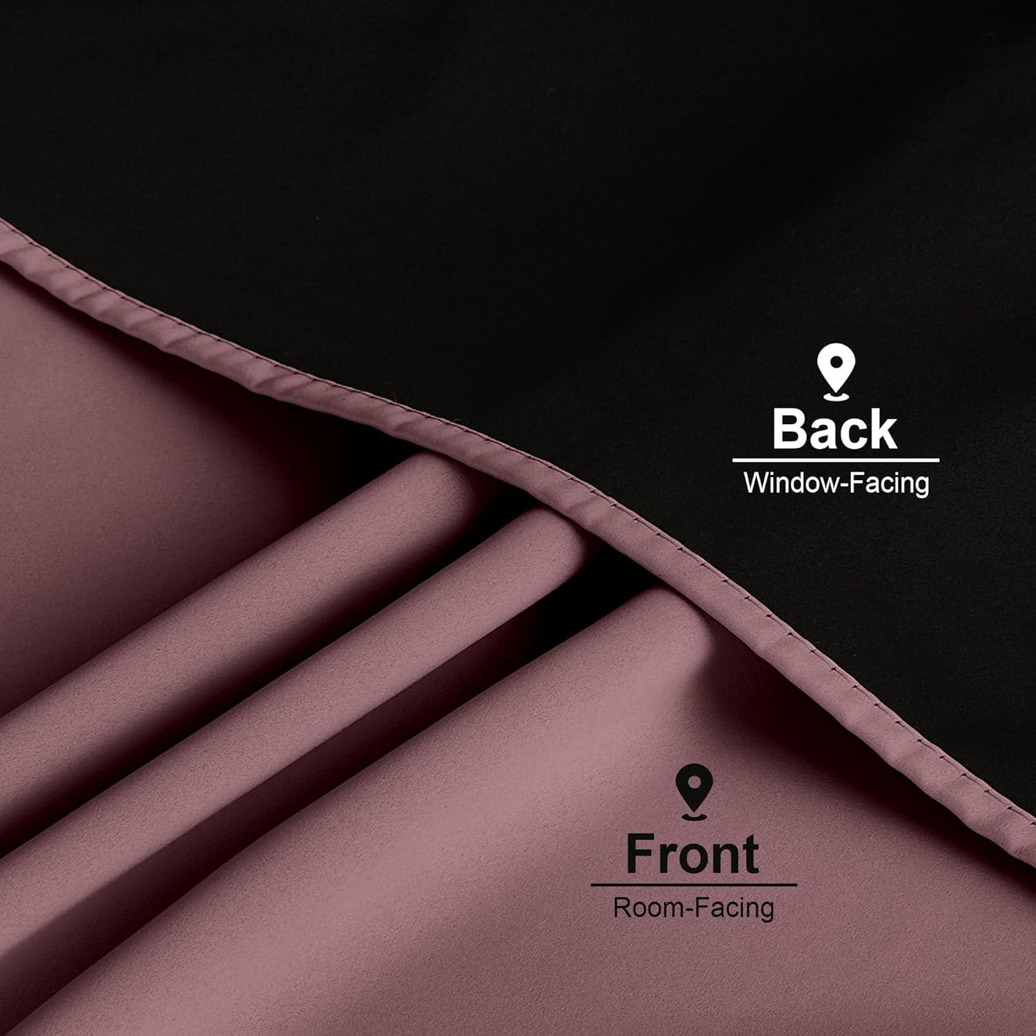 imageNICETOWN 100 Blackout Window Curtain Panels Cold and Full Light Blocking Drapes with Black Liner for Nursery 84 Inches Drop Thermal Insulated Draperies Pure White 2 Pieces 52 inches WideDry Rose