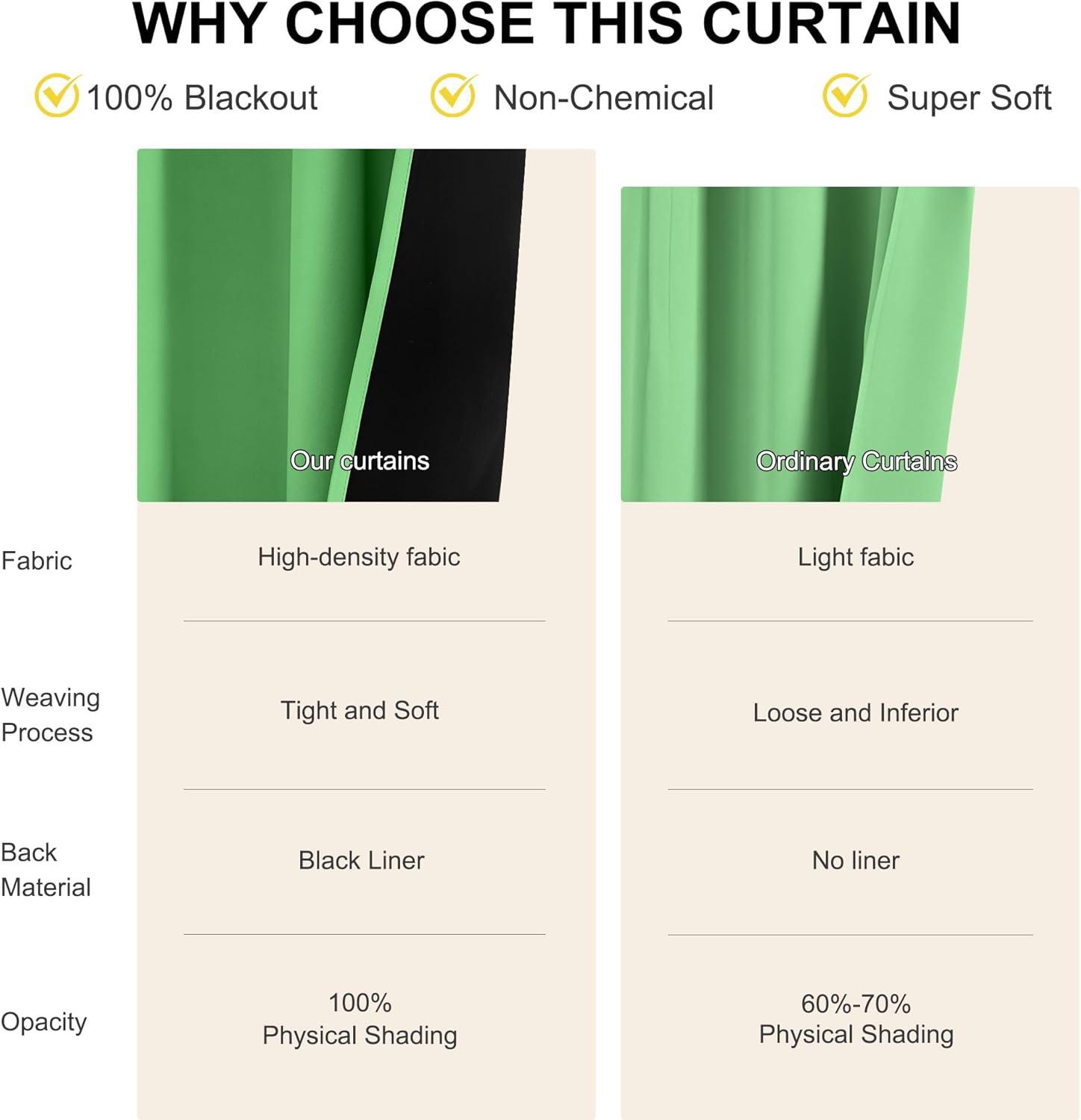 NICETOWN 100% Blackout Window Curtain Panels, Cold and Full Light Blocking Drapes with Black Liner for Nursery, 84 Inches Drop Thermal Insulated Draperies (Pure White, 2 Pieces, 52 inches Wide)(Fresh Green)