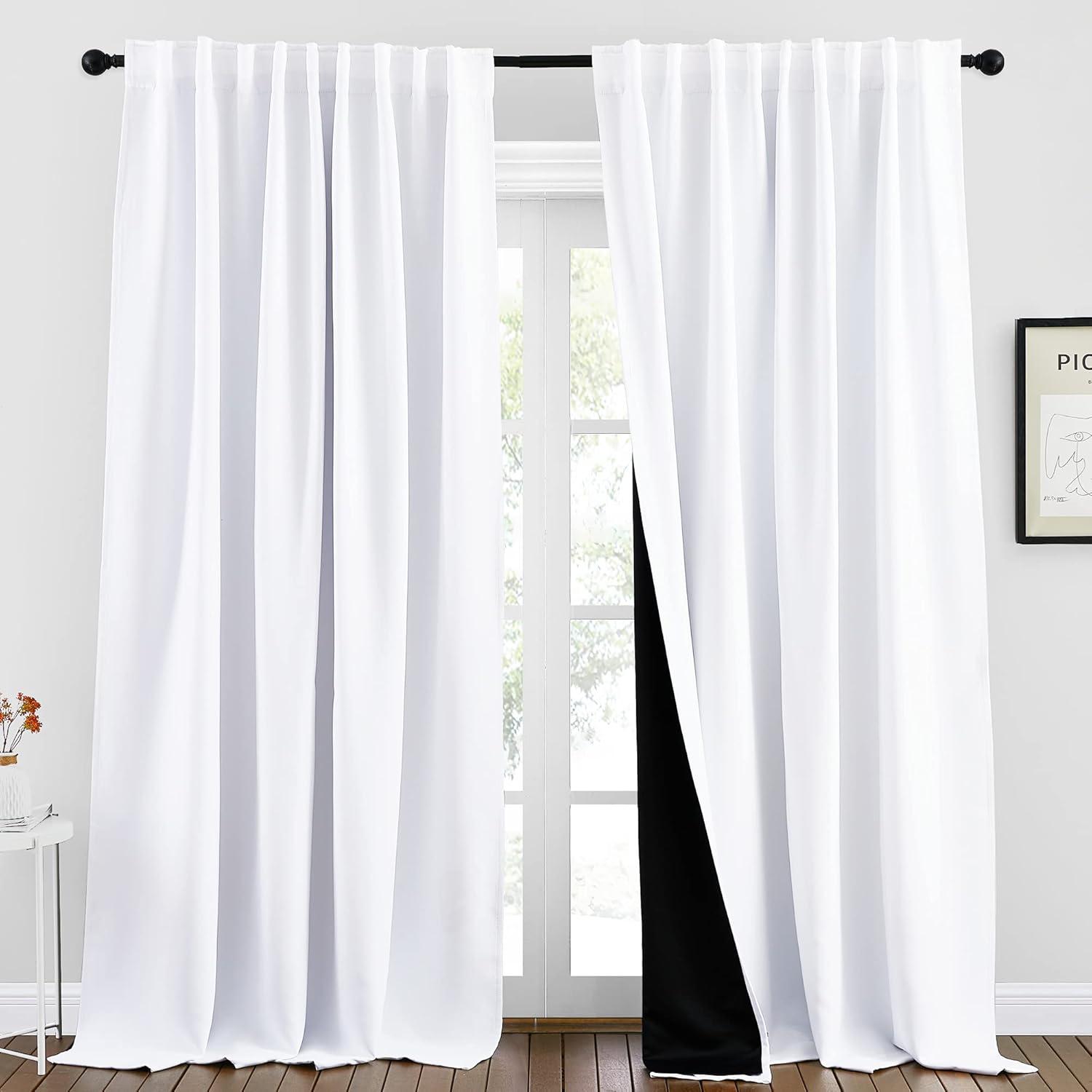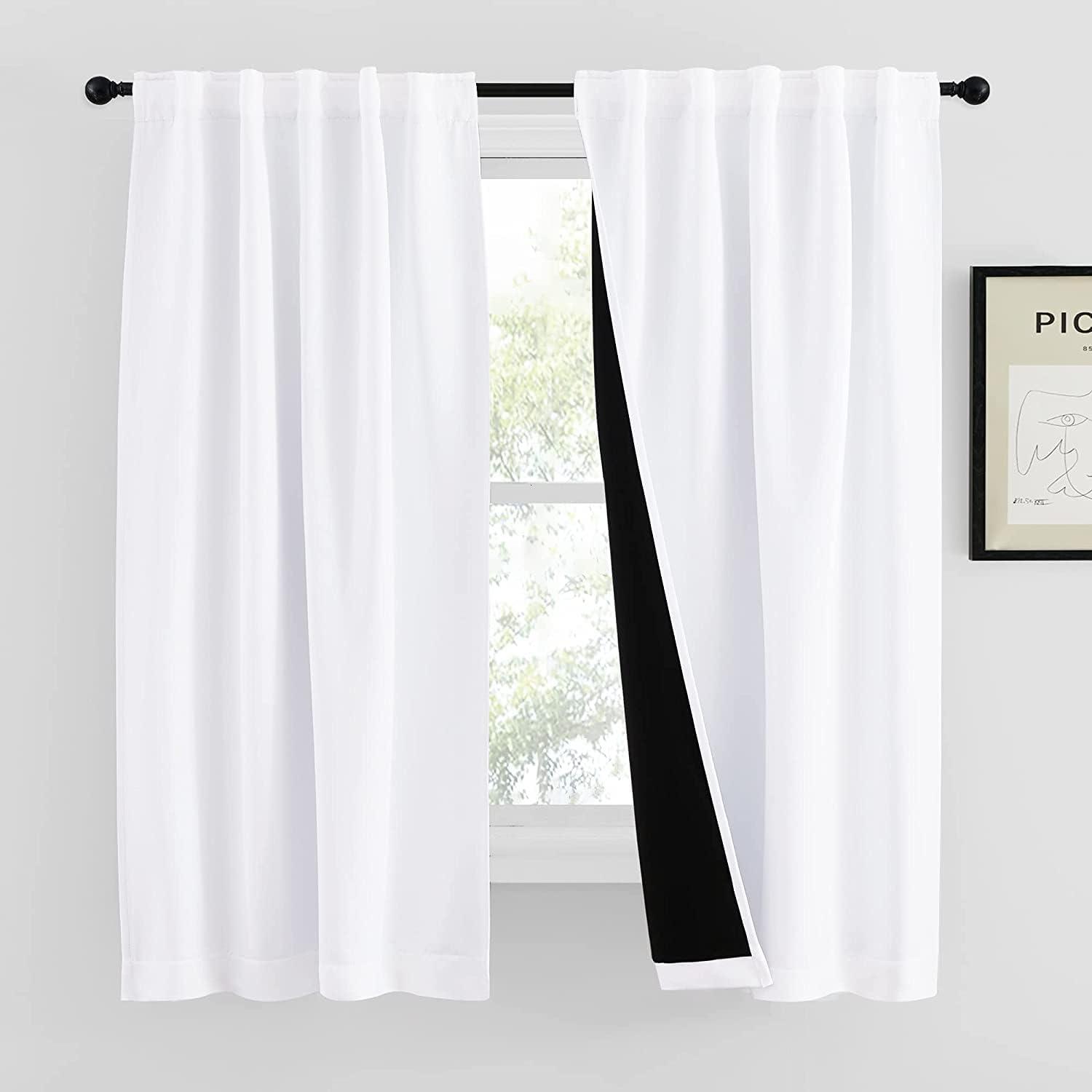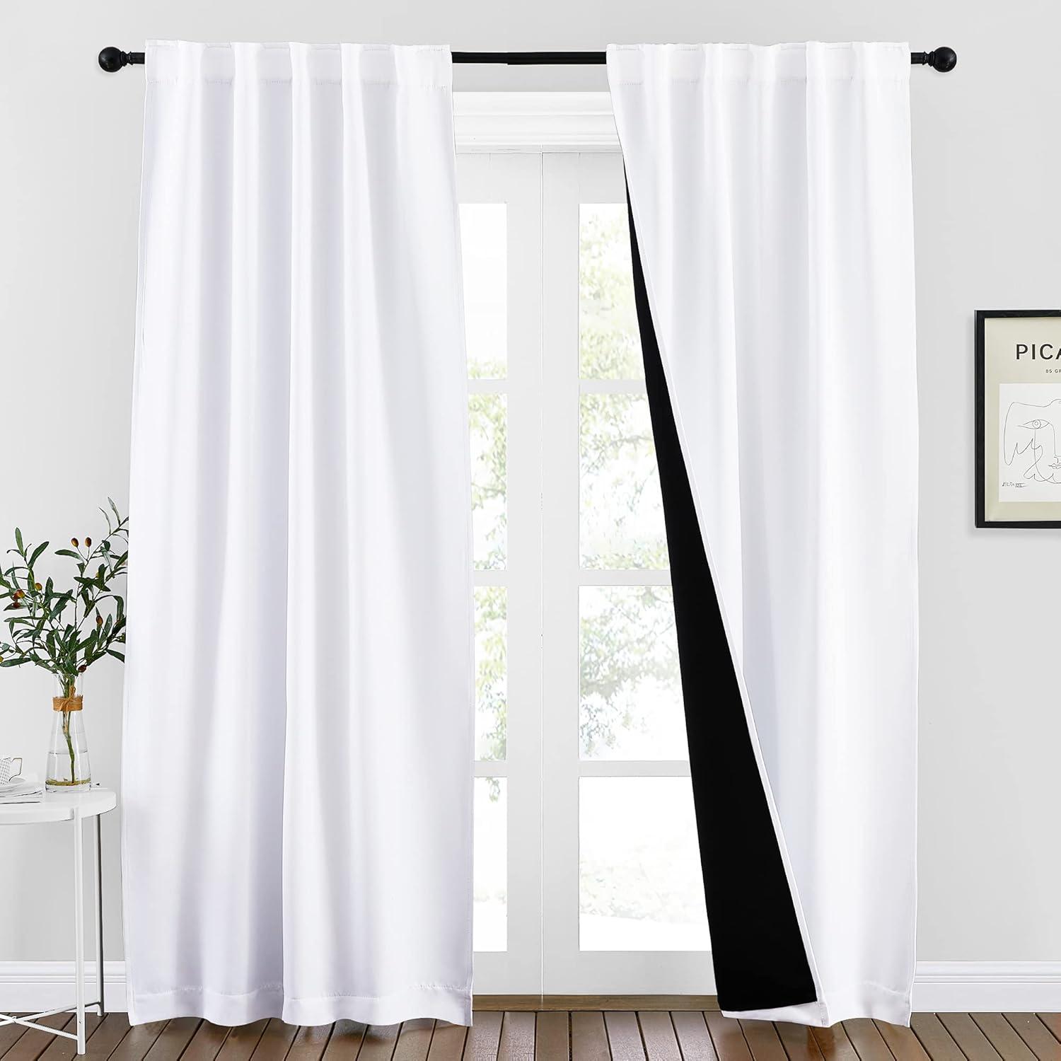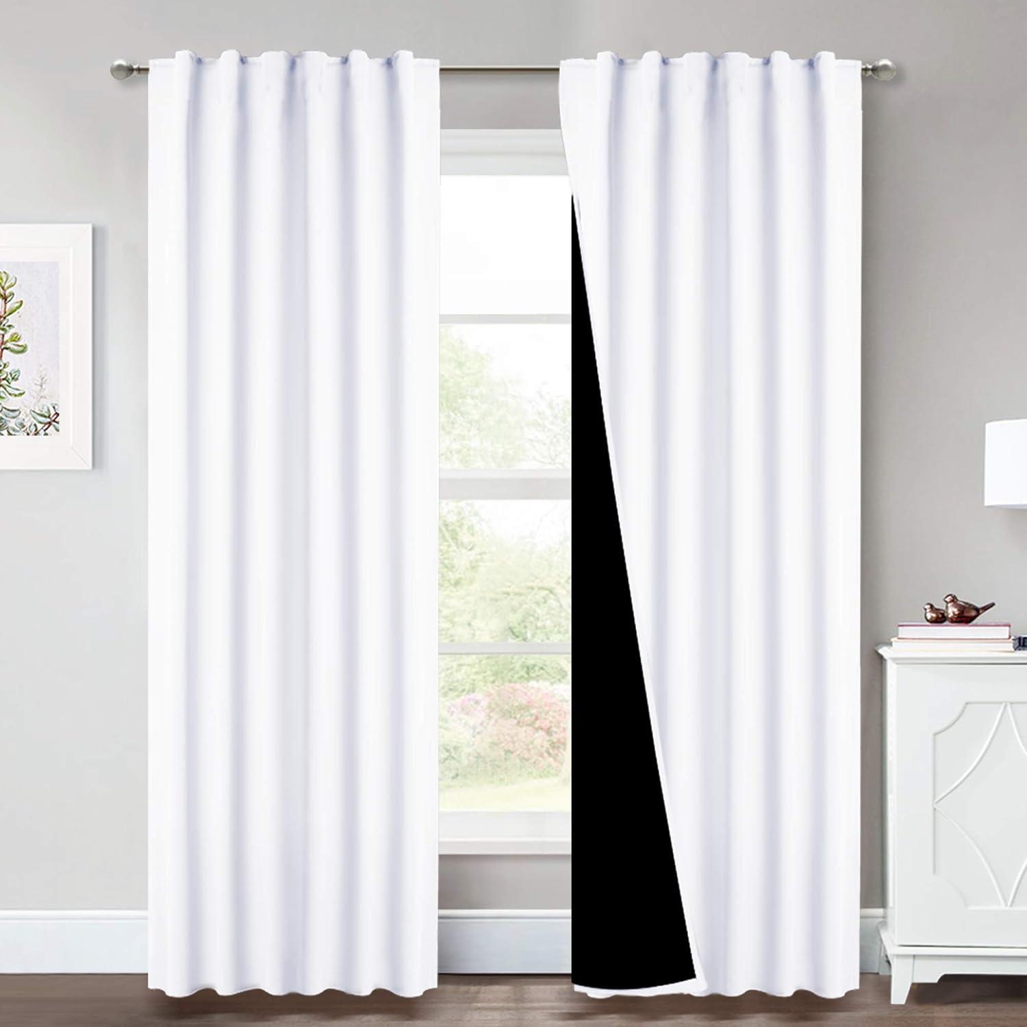 NICETOWN 100% Blackout Window Curtain Panels, Cold and Full Light Blocking Drapes with Black Liner for Nursery, 84 Inches Drop Thermal Insulated Draperies (Pure White, 2 Pieces, 52 inches Wide)(Pure White)