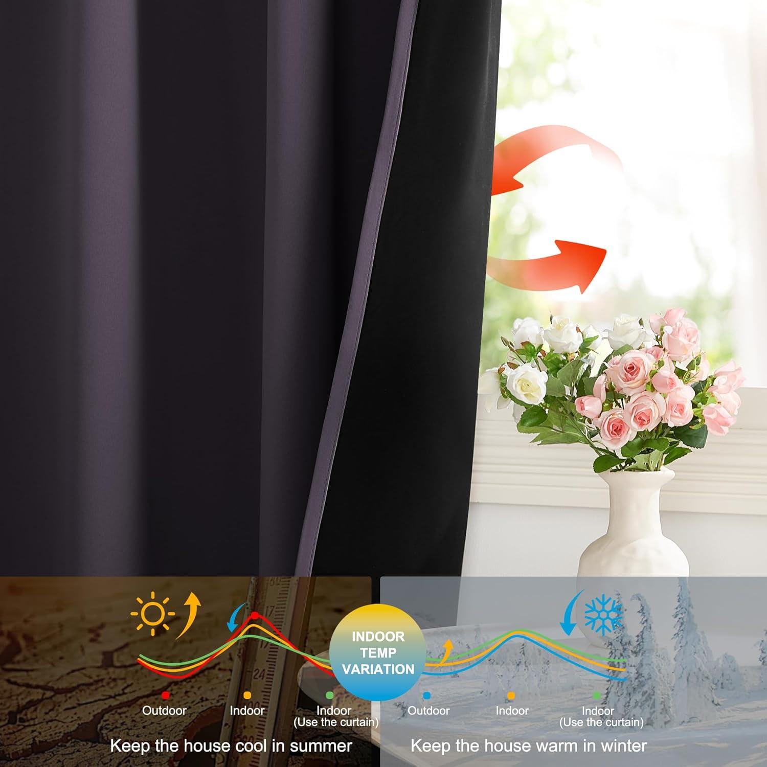 imageNICETOWN 100 Blackout Window Curtain Panels Cold and Full Light Blocking Drapes with Black Liner for Nursery 84 Inches Drop Thermal Insulated Draperies Pure White 2 Pieces 52 inches WideRoyal Purple