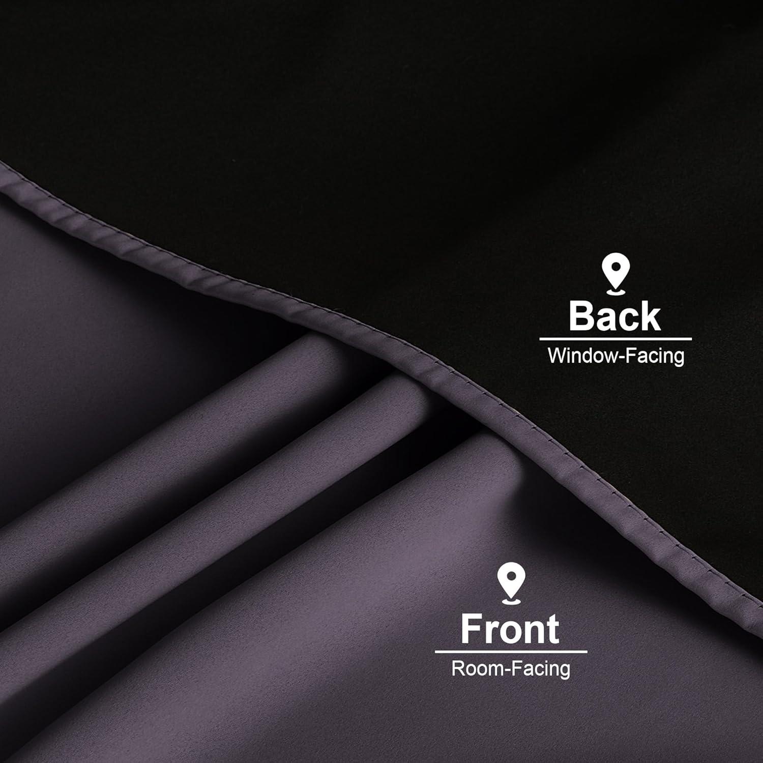 NICETOWN 100% Blackout Window Curtain Panels, Cold and Full Light Blocking Drapes with Black Liner for Nursery, 84 Inches Drop Thermal Insulated Draperies (Pure White, 2 Pieces, 52 inches Wide)(Purple Brown)
