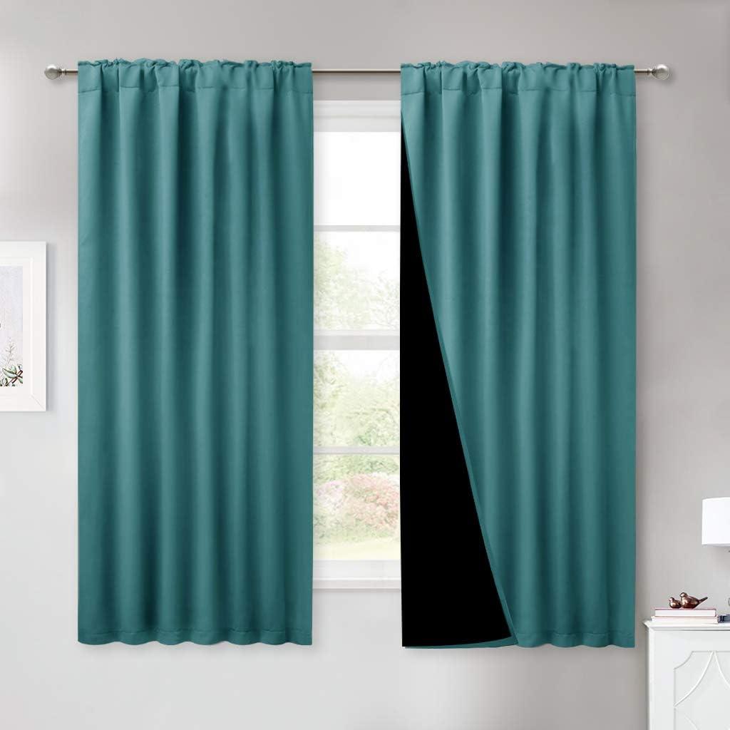 NICETOWN 100% Blackout Window Curtain Panels, Cold and Full Light Blocking Drapes with Black Liner for Nursery, 84 Inches Drop Thermal Insulated Draperies (Pure White, 2 Pieces, 52 inches Wide)(Sea Teal)