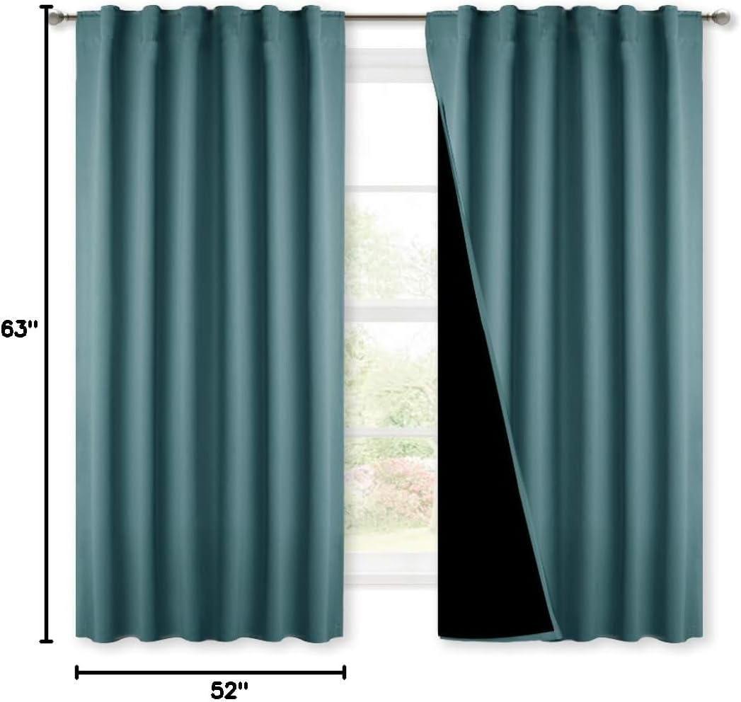 imageNICETOWN 100 Blackout Window Curtain Panels Cold and Full Light Blocking Drapes with Black Liner for Nursery 84 Inches Drop Thermal Insulated Draperies Pure White 2 Pieces 52 inches WideSea Teal