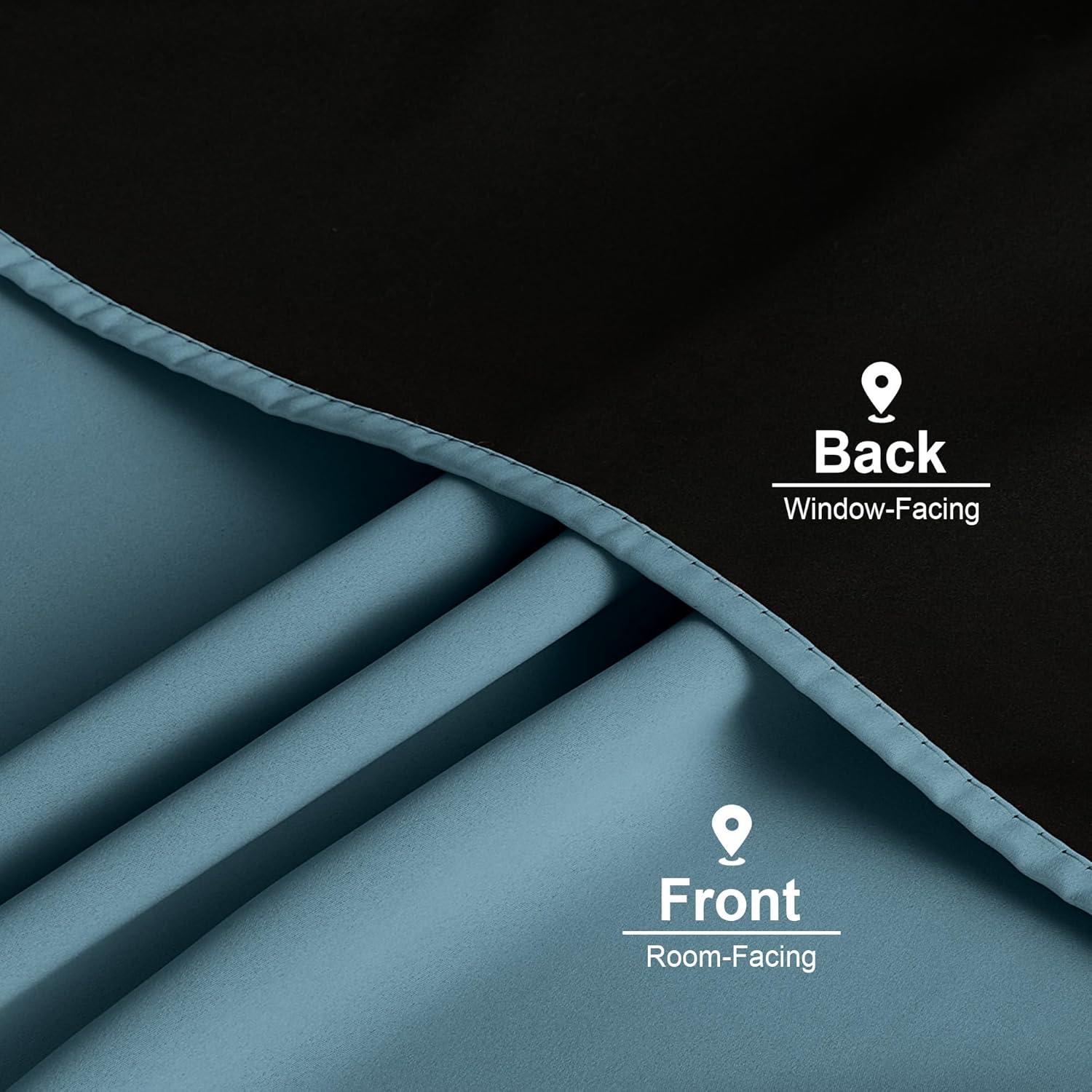 NICETOWN 100% Blackout Window Curtain Panels, Cold and Full Light Blocking Drapes with Black Liner for Nursery, 84 Inches Drop Thermal Insulated Draperies (Pure White, 2 Pieces, 52 inches Wide)(Smoky Blue)