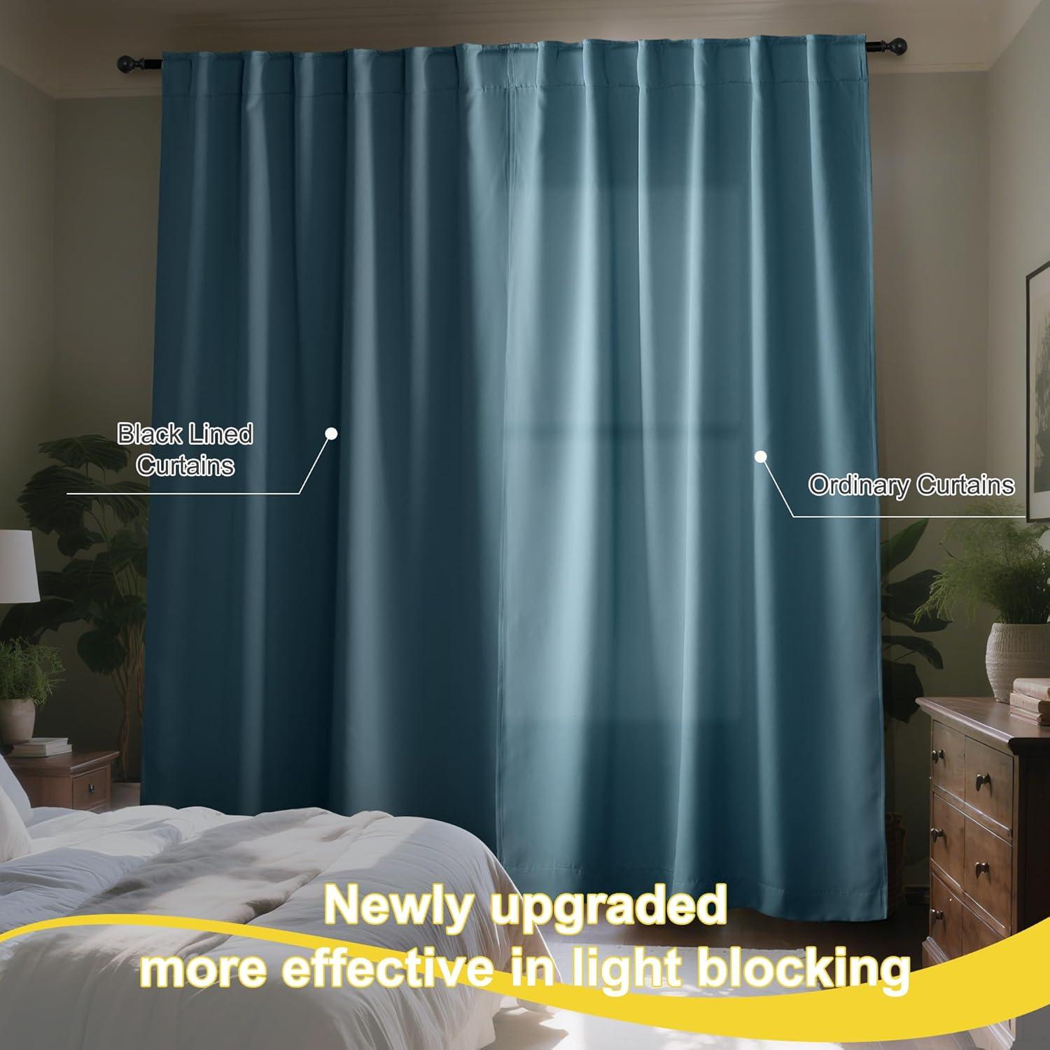 100% BLACKOUT: Sew in black liner backing makes the drapes thick enough to completely keep out the 100% SUNLIGHT and UV RAY. The greatest benefit is to offer you a real dark environment, bringing you a good night's sleep during the day.