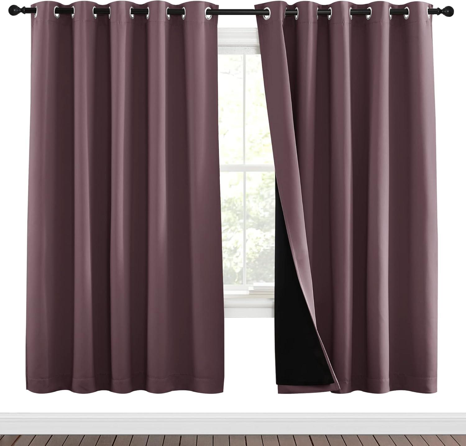 NICETOWN 100% Blackout Window Curtain Panels, Full Light Blocking Drapes with Black Liner for Nursery, 72-inch Drop Thermal Insulated Draperies (Dry Rose, 2 Pieces, 70-inch Wide Per Panel)