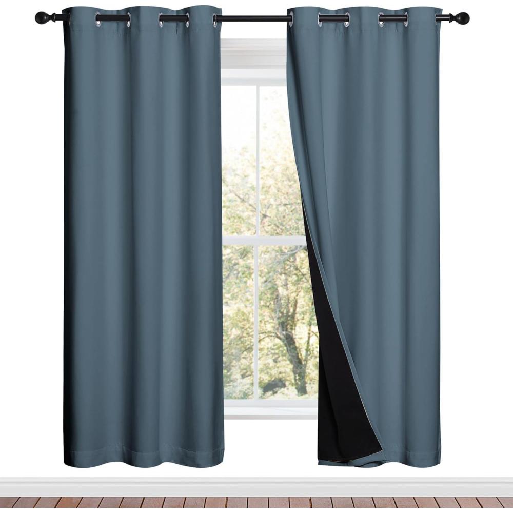 NICETOWN 100% Blackout Window Curtain Panels, Smoky Blue, 2 Pieces, 42-inch Wide Per Panel, Full Light Blocking Drapes with Black Liner for Nursery, 72-inch Drop Thermal Insulated Draperies