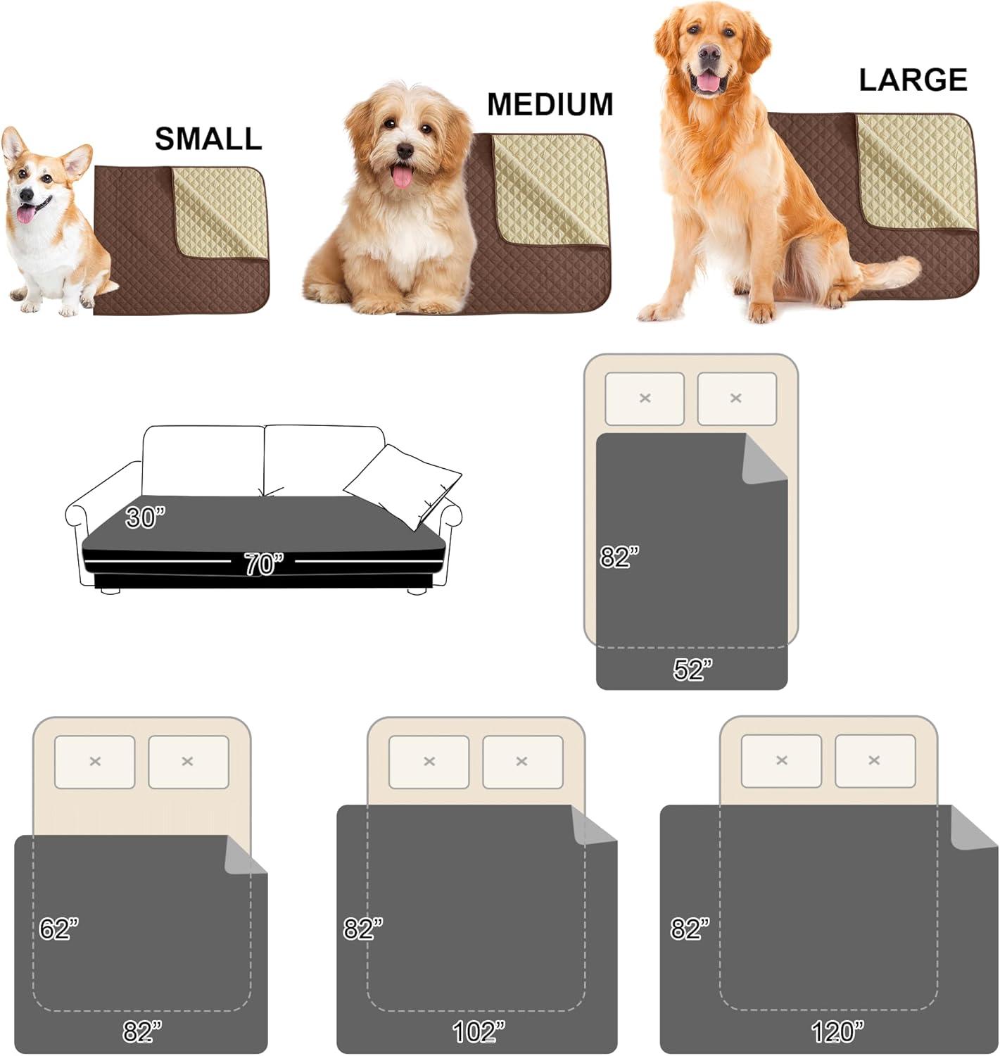 NICETOWN 100% Waterproof Dog Blanket Sofa Covers Couch Cover for Pets Cats Furniture Protector Dog Travel Bed Reversible Washable Mat for Car Floor, 82" W x 82" L, 1 Panel, Beige/Khaki(Chocolate/Sand)