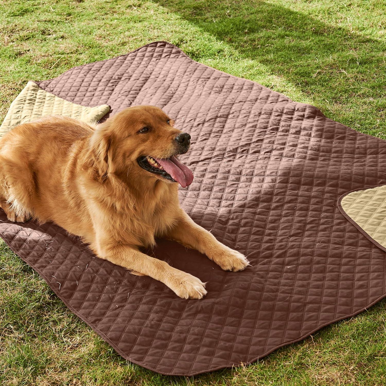 NICETOWN 100% Waterproof Dog Blanket Sofa Covers Couch Cover for Pets Cats Furniture Protector Dog Travel Bed Reversible Washable Mat for Car Floor, 82″ W x 82″ L, 1 Panel, Beige/Khaki(Chocolate/Sand)