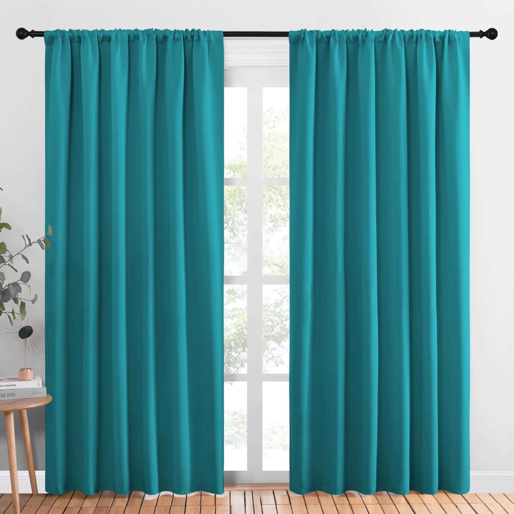 NICETOWN 2 Panels Blackout Curtains, Rod Pocket Thermal Insulated Drapes 84 inches Long, Easy-Care Modern Home Decoration Sunshades for Guest Room, Living Room, Office, 62 x 84 Inch, Peacock Blue