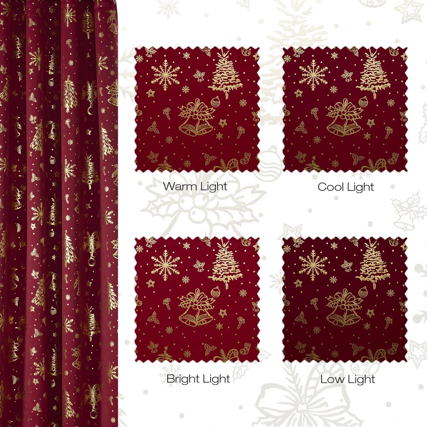 FESTIVE DECOR: NICETOWN Christmas Red Curtains, designed with gold foil print and Christmas theme, instantly elevate your Christmas decor. These festive drapes bring holiday cheer to your house, creating a magical atmosphere for Christmas season.