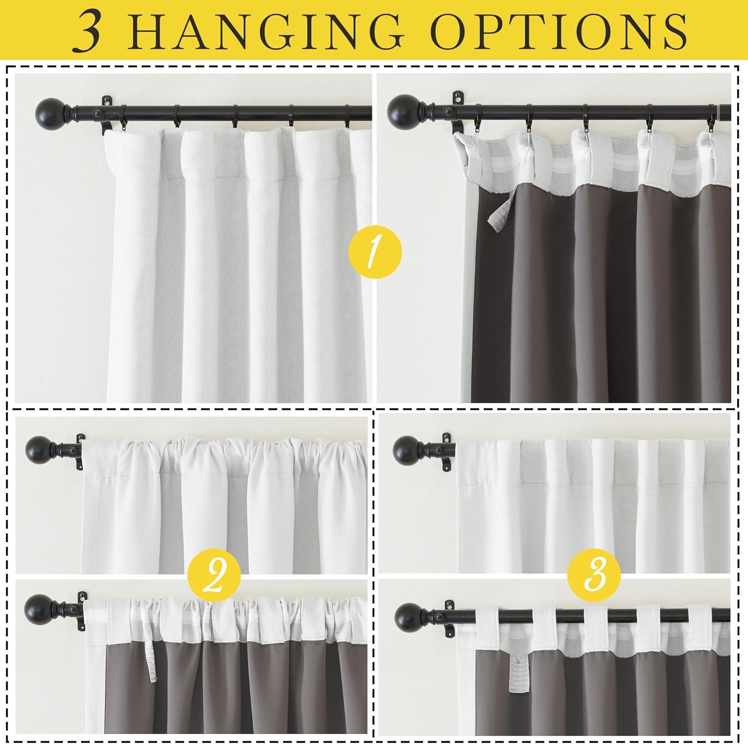 Hanging Options: You can hang your new blackout drapes with 3 styles: back tab, rod pocket, or with your own small hooks on the hook belt to let them gently hang downward, then you will get elegant & special pinch pleated curtains.