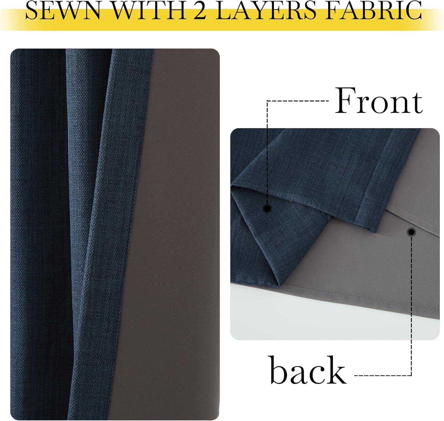 NICETOWN 2 Panels Faux Linen 100% Blackout Curtains for Living Room, Rod Pocket/Back Tab/Hook Belt Room Darkening Window Treatment with Liner Thermal Curtains for Bedroom, Natural, W50 x L96(Navy Blue)