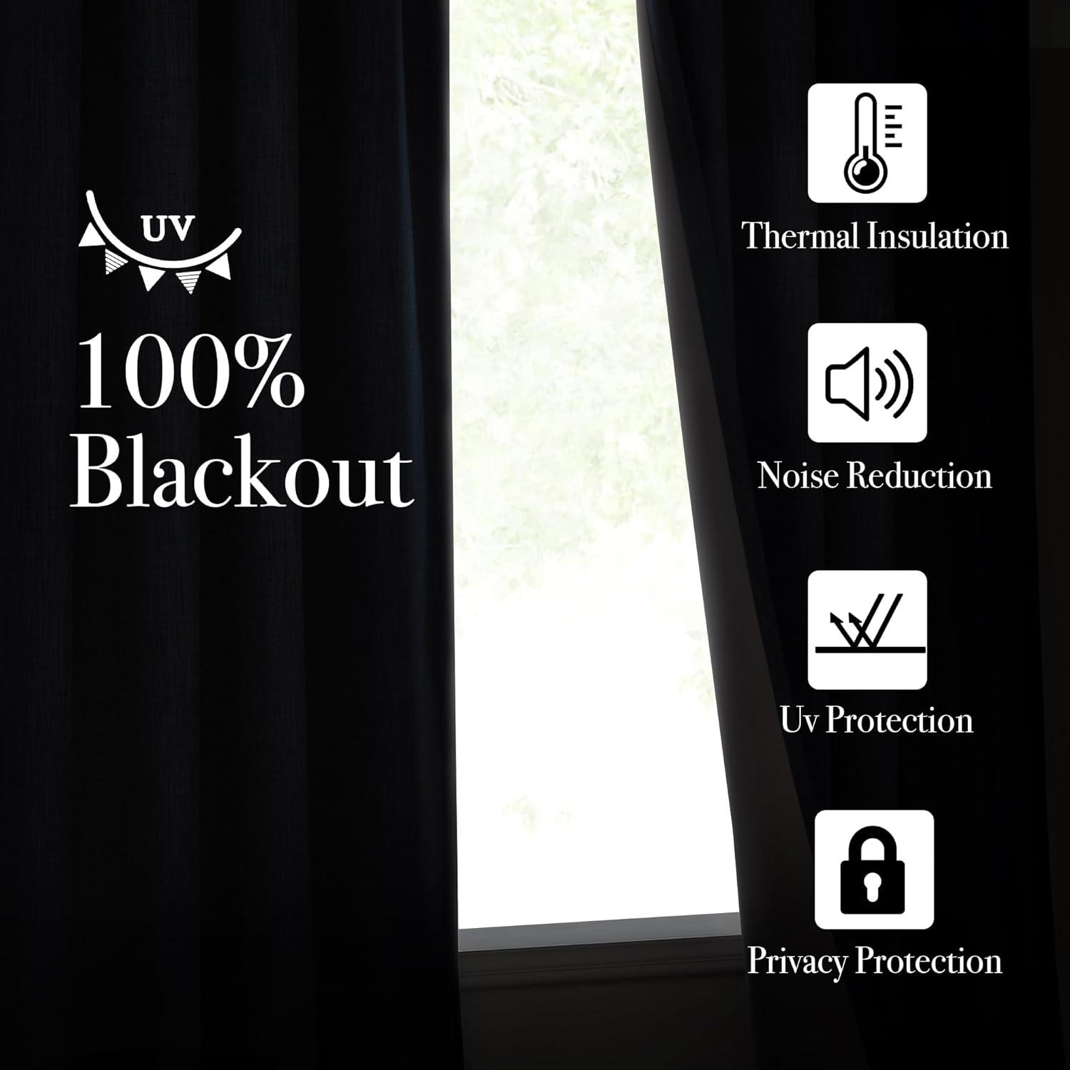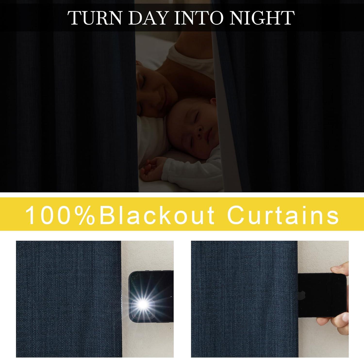100% Blackout: The faux linen real blackout curtains sewn in grey liner backing to keep out the sunlight and UV ray completely. Also offer you a really dark environment, bringing you a good night's sleep during the day.