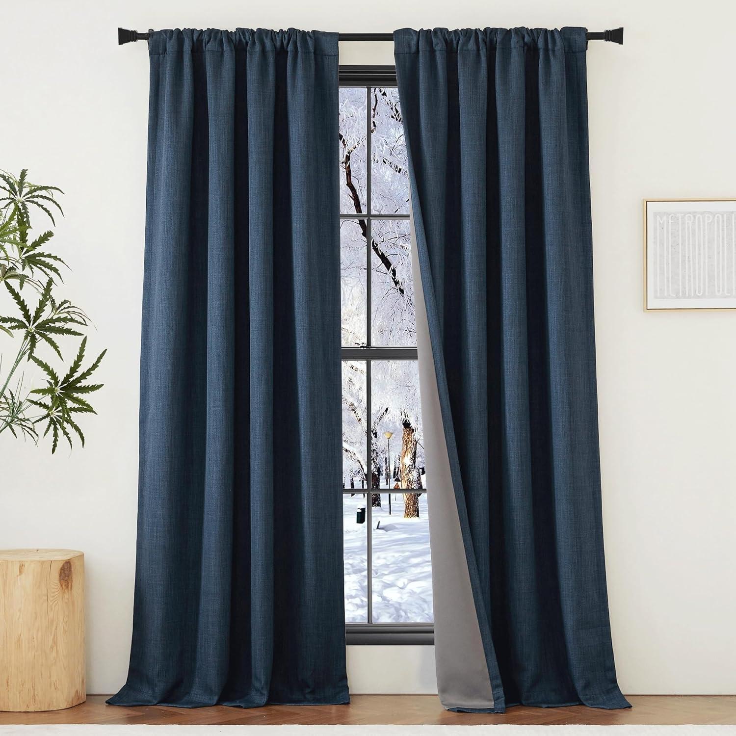 Don’t miss out on our limited-time offer: buy NICETOWN 2 Panels Faux Linen 100% Blackout Curtains for Living Room, Rod Pocket/Back Tab/Hook Belt Room Darkening Window Treatment with Liner Thermal Curtains for Bedroom, Natural, W50 x L96(Navy Blue), get {accessory} 50% off!